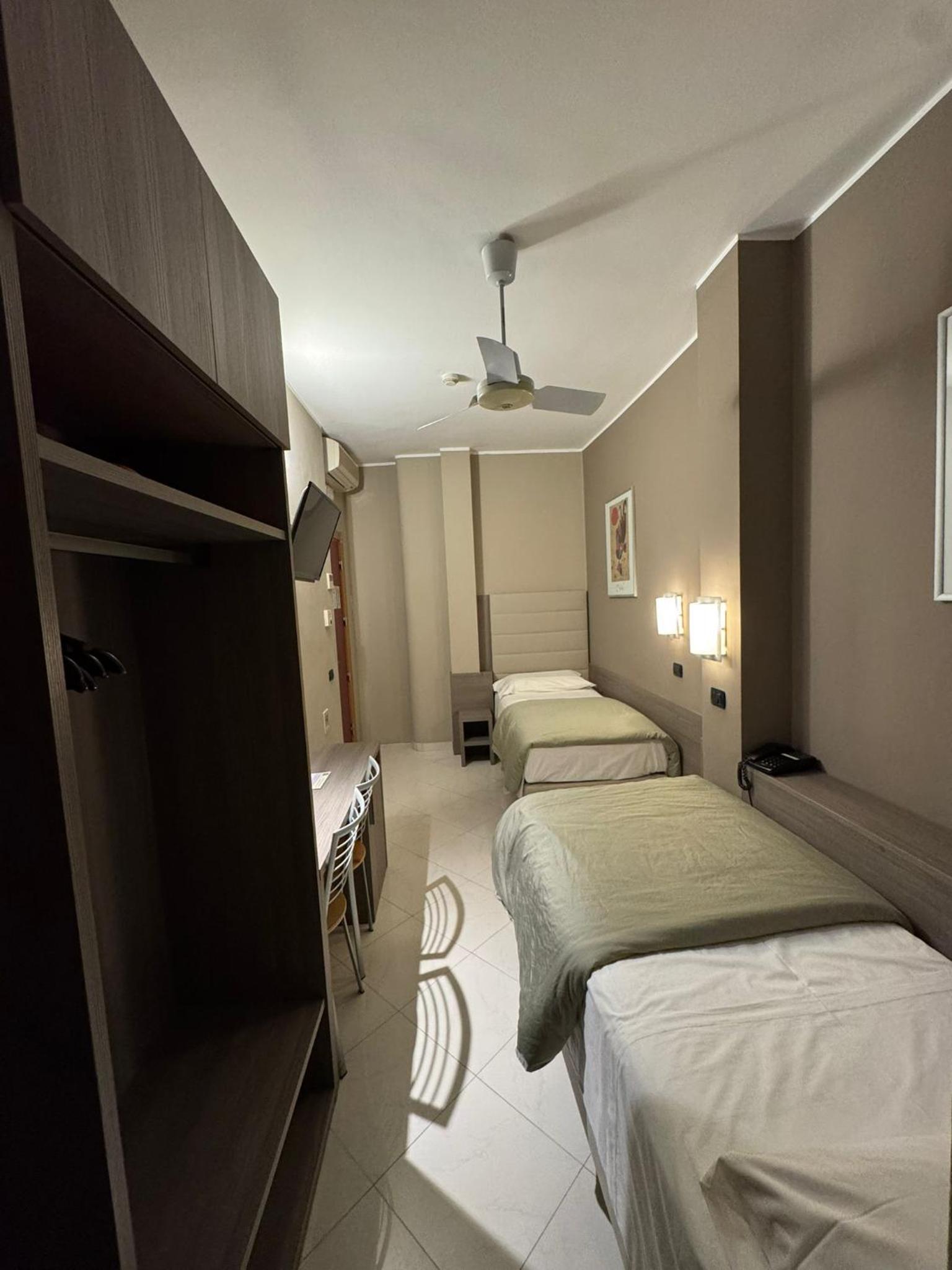 La mia camera singola era davvero piccola: il letto era sotto la finestra (che non ho mai aperto anche perché dava su un cortile interno). Il condizionatore soffia aria direttamente sul letto. La televisione si accende ma, a parte i vari menú di configurazione, non fa vedere alcuna immagine. Gli schiamazzi del corridoio si sentono perfettamente anche in camera.