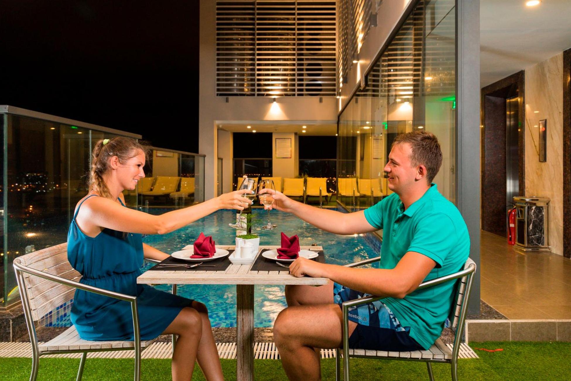 Gosia Hotel in Nha Trang offers a range of luxurious amenities including an outdoor swimming pool, shared lounge, and a terrace for guests to unwind and relax.