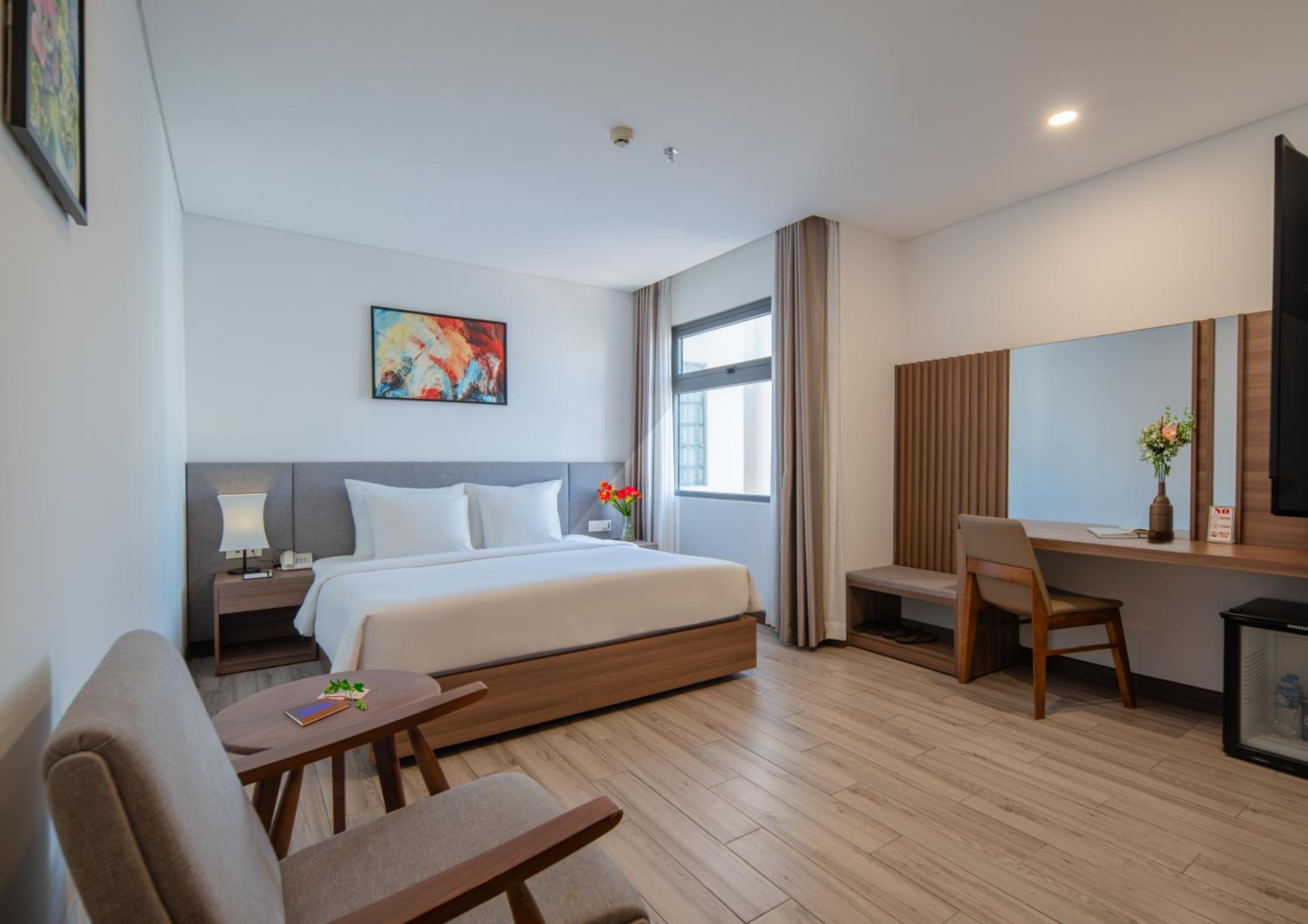 The location is great, close to the beach and many restaurants around. Comfortable bed, room has a fridge and a small kettle. There is a nice roof where you can chill with beautiful city views. Breakfast is okay-ish. There is a parking for a motorbike. Overall good price for staying in the very center of Nha Trang.