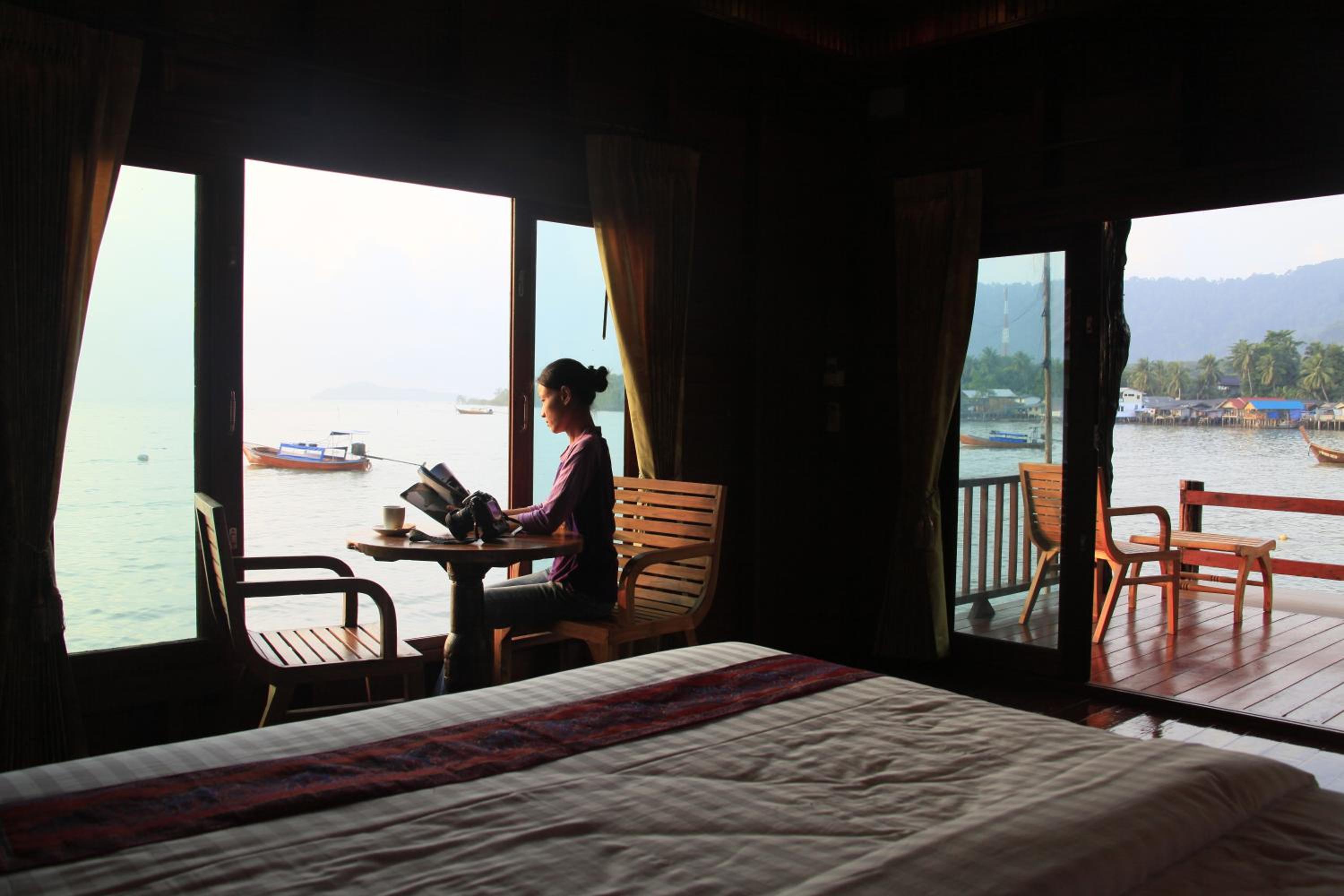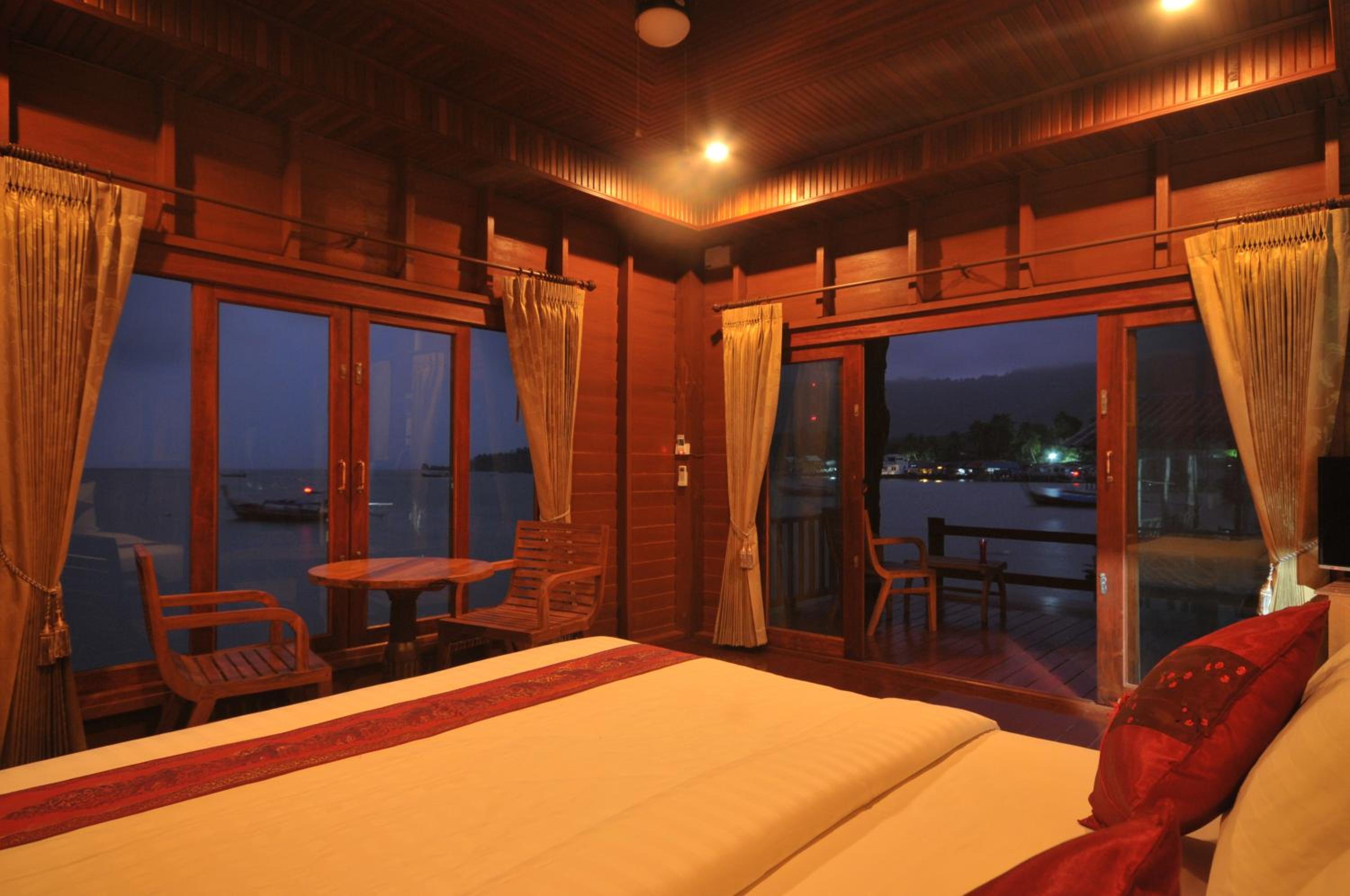 La chambre face à la mer en première loge pour le lever du soleil. Belle chambre en bois avec beaucoup de rangement.
