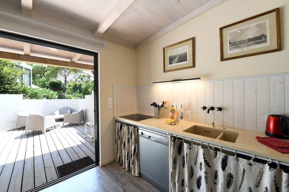 The kitchen is well-equipped with a dishwasher, electric hob, microwave, kettle and toaster. The beach is only five minutes walk away. Marie-Geneviève was a wonderful host and always eager to help and ensure that our stay was going well.