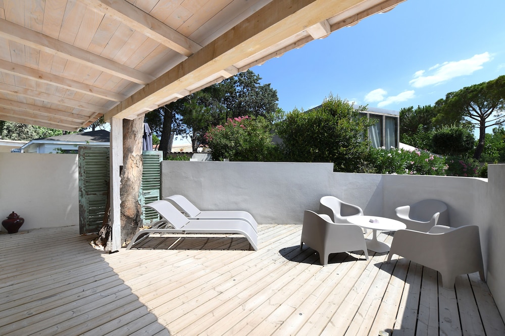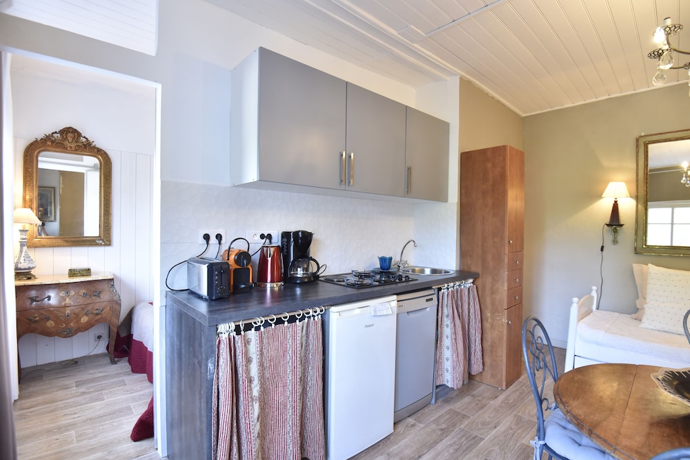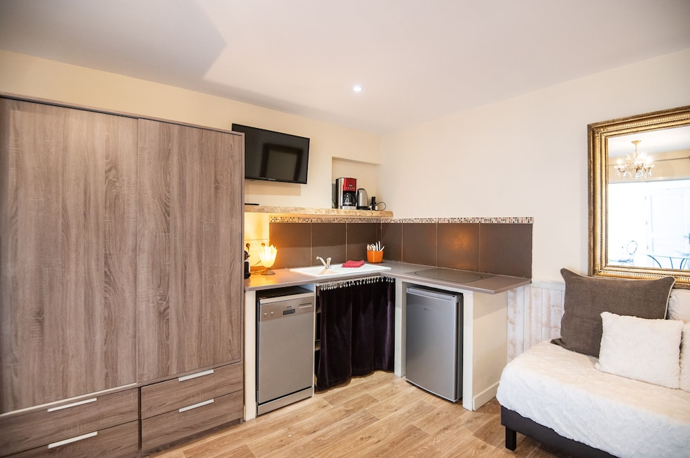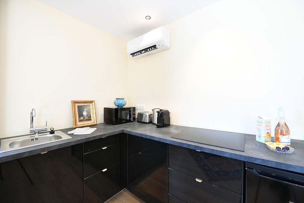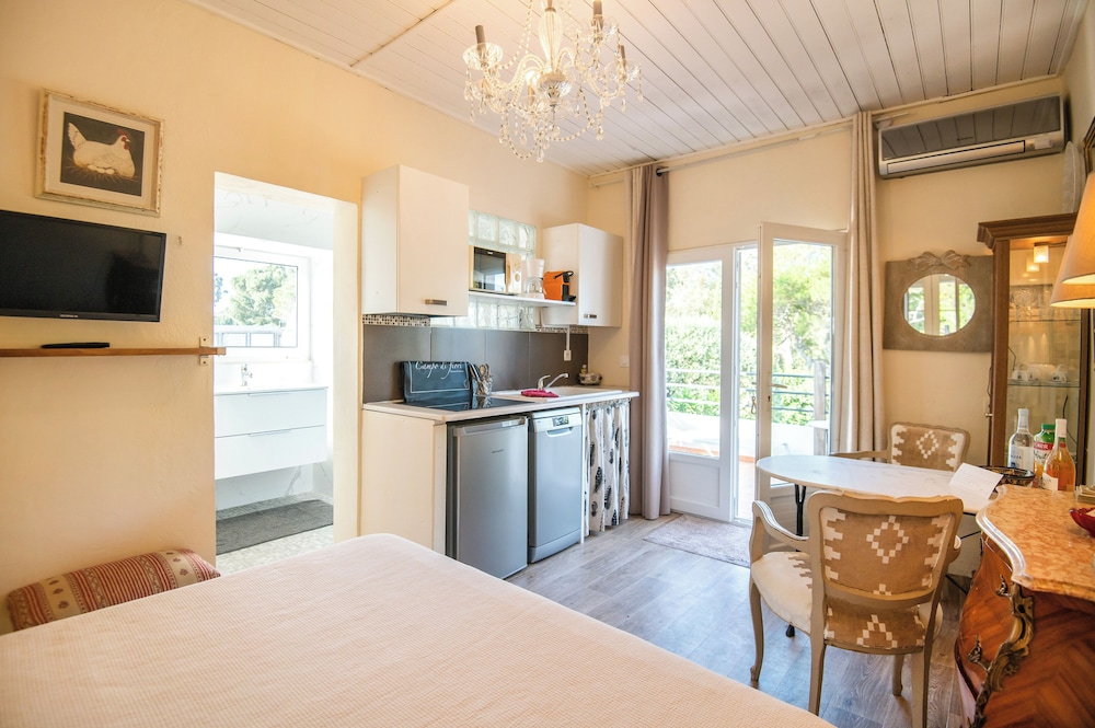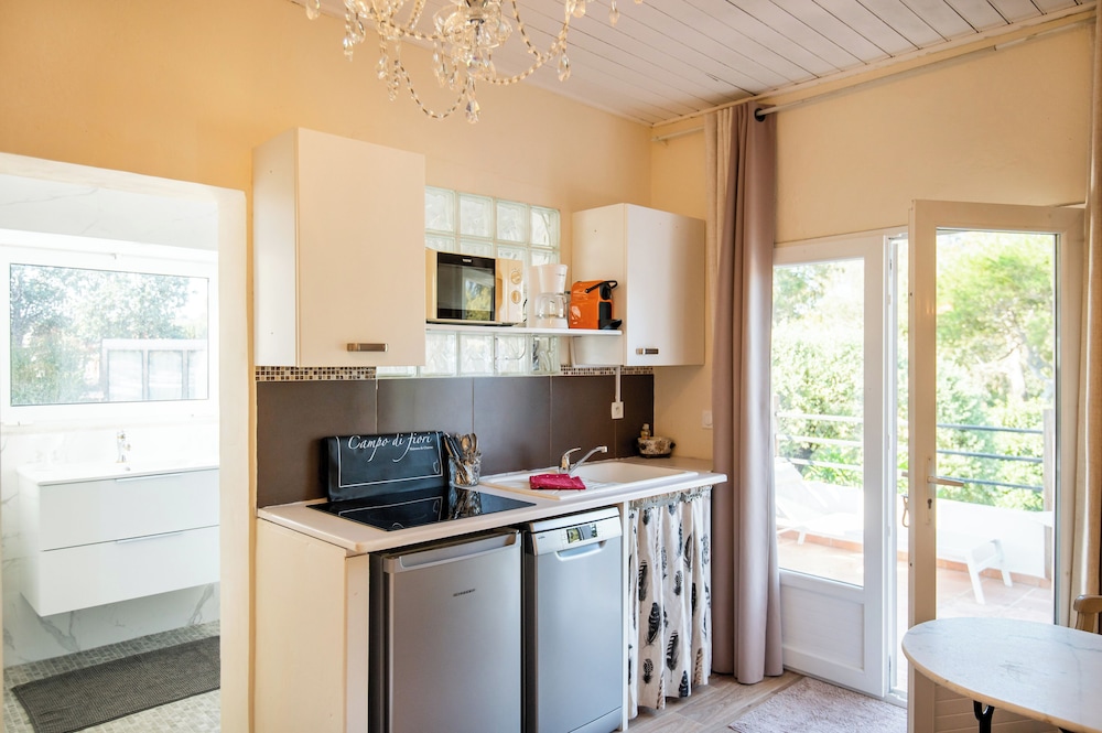 The property is absolutely beautiful with most rooms offering little private outdoor areas, as well. They stock the kitchen with all of the pots, pans, silverware, etc that you would need to prepare your own food if you want. There is also a very cute little common patio area if you'd like to make new friends with the other guests there. The location is just a short walk to the major sites and beaches of Calvi - it was absolutely perfect.