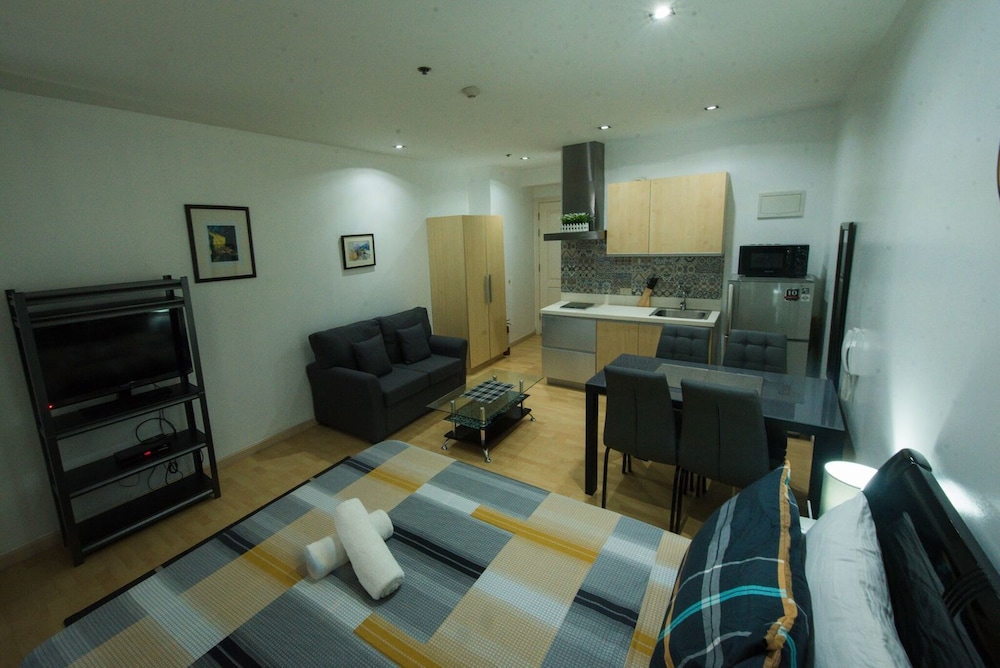Bed, bathroom, kitchen and nothing more, all basic but clean. Note this is an apartment managed by a real estate agent on behalf of the owner - there's no 24/7 reception, room service or other hotel niceties.