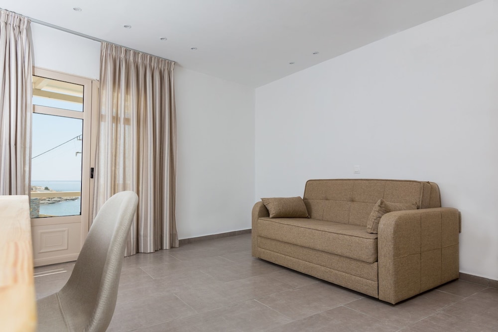 Very nice hotel. The room was very nice, with a great bathroom. The hotel beach was a great surprise, no charge for the umbrella and sunbeds, and the beach bar was beautiful day and night. All staff members were very friendly. Evelyn, who welcomed us at arrival, was very nice and helpful. Panos, the hotel manager, was always ready to provide assistance. The staff at the restaurant and the beach bar, Nikos and Basilis, were super friendly. Everyone made us feel at home. We had a great stay in Kea