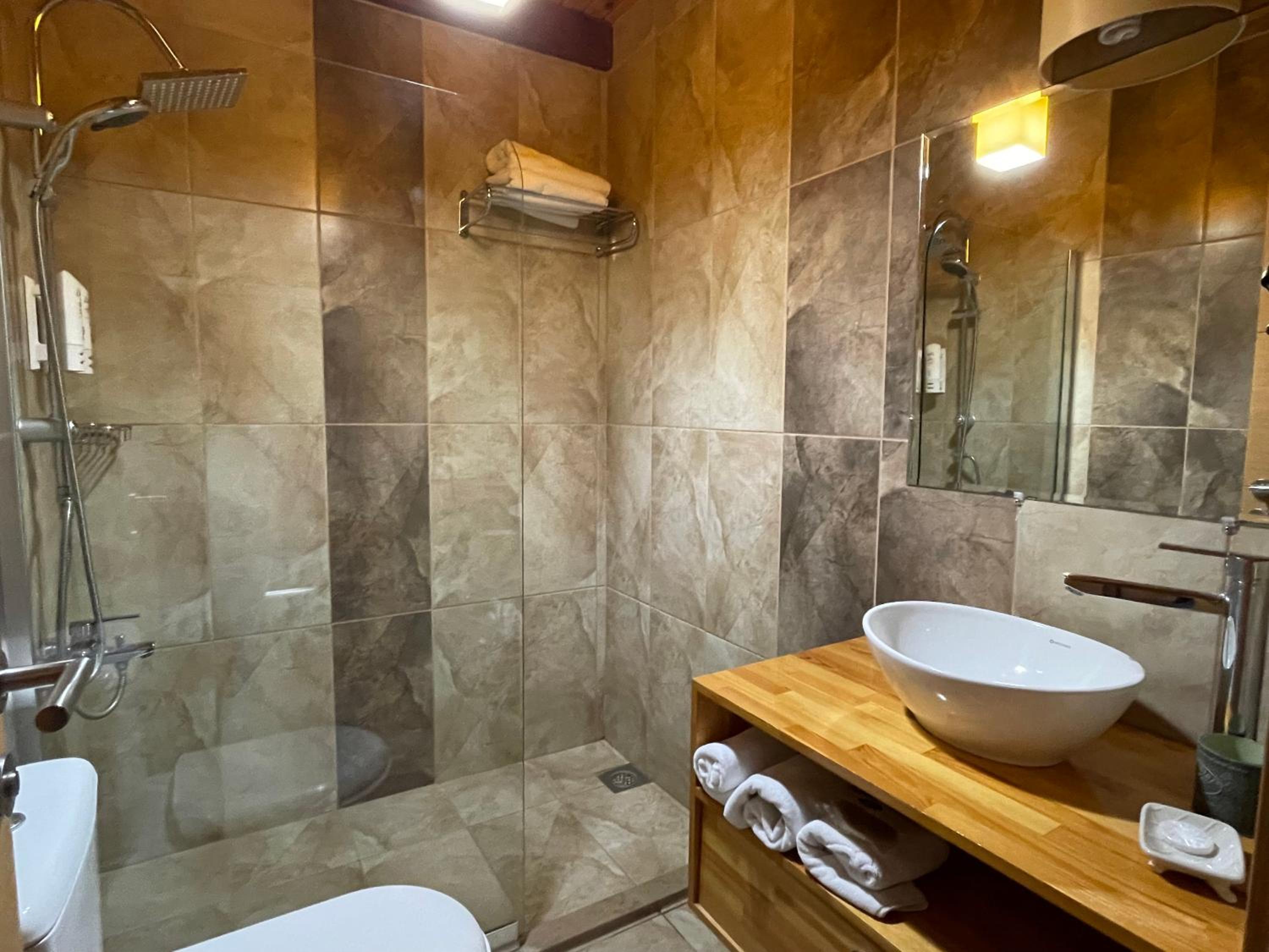 Abbiamo soggiornato al Cevizdibi Hotel durante il trasferimento in moto verso la Bulgaria. La stanza che ci è stata assegnata era di dimensioni normali, con un bel bagno ma forse un poco piccolo (comunque efficiente). Nel complesso per due moto viaggiatori in tappa trasferimento questa struttura è consigliata. I due ragazzi della reception si sono mostrati educatissimi e sempre disponibili a fornire indicazioni sia per la struttura che per eventuali altre esigenze. La struttura è dotata di un grande giardino dove trovare un po' di fresco la sera visto il caldo delle giornate in Turchia.