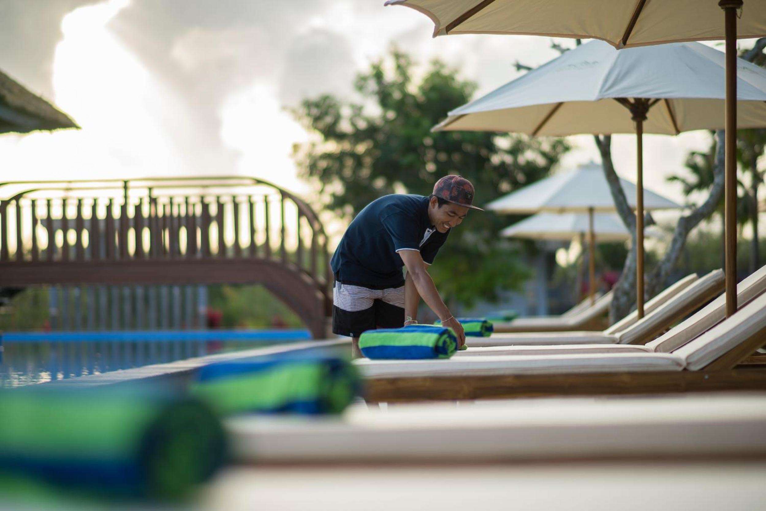 Être réveillé à 4h du matin par les prières d’une confession pendant 45 minutes puis à 6h par une autre confession puis le soir tard… Le personnel est professionnel mais moins attentionné que dans les autres hôtels que nous avons pris à Bali antérieurement.