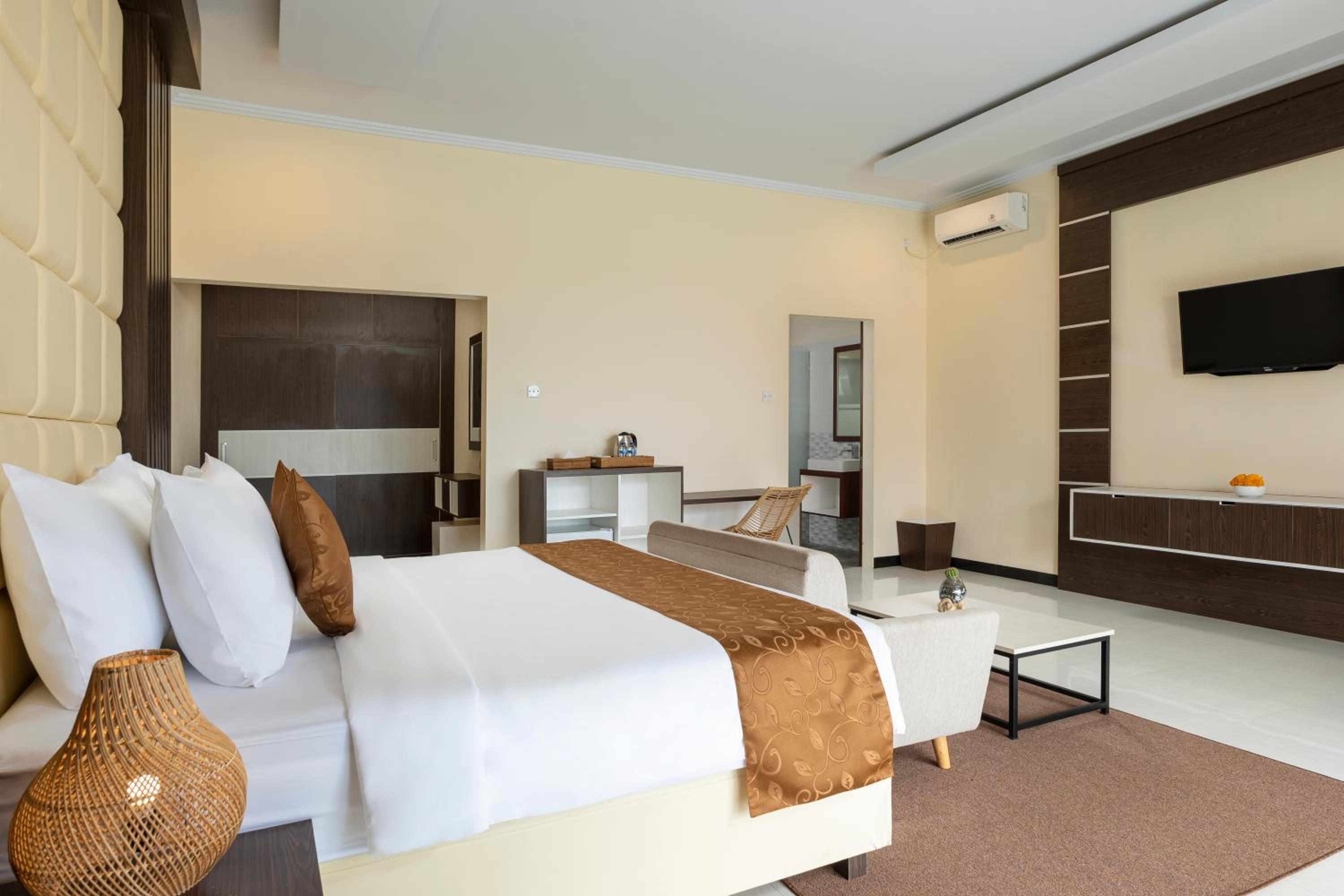 Luxurious Amenities: Guests can unwind in the infinity pool or indulge in delectable Asian cuisine at the on-site restaurant. The elegantly decorated suites feature modern comforts like air conditioning, flat-screen TVs, and private bathrooms.
