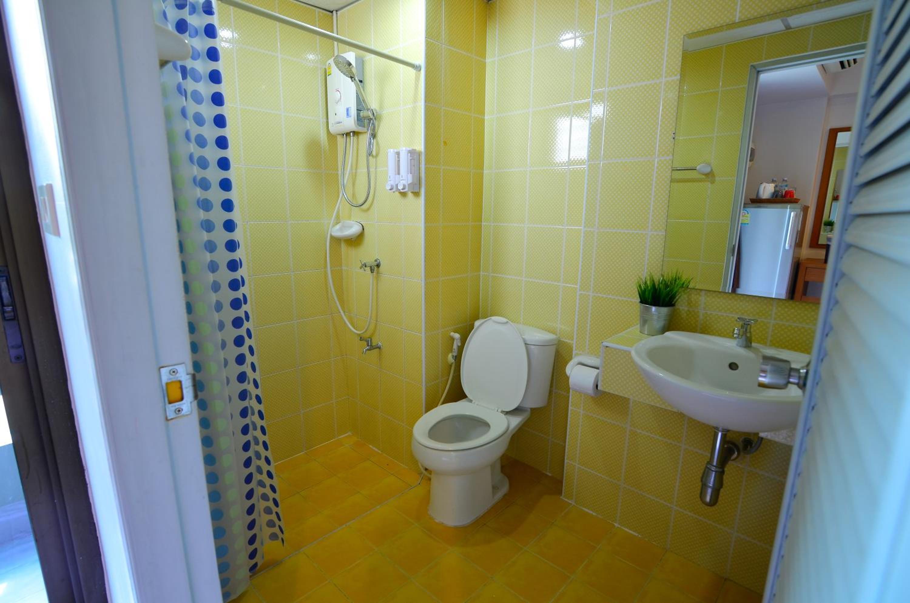 Bathroom looks a bit old but functional. Water pressure for shower is somewhat light but overalll worth the price.