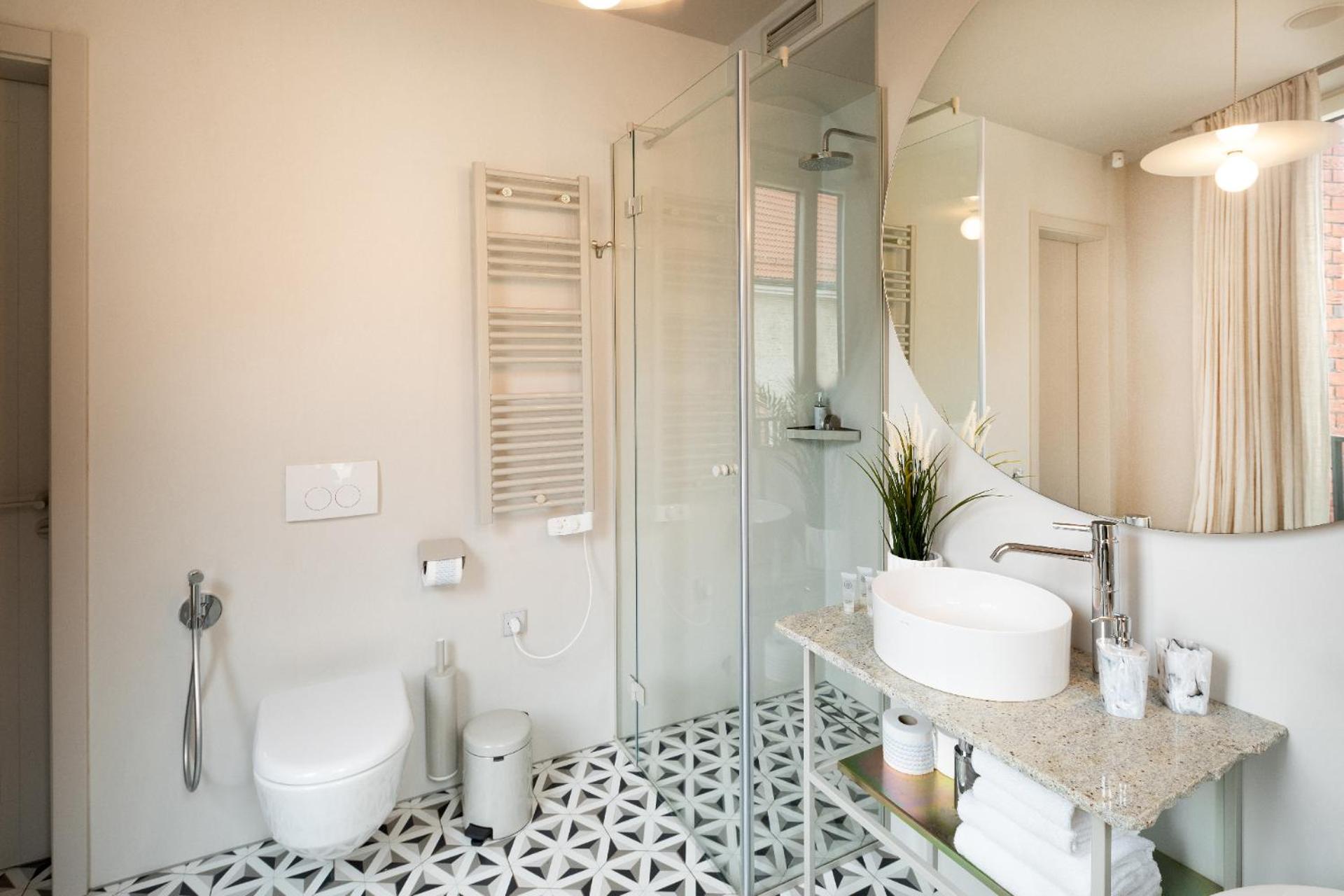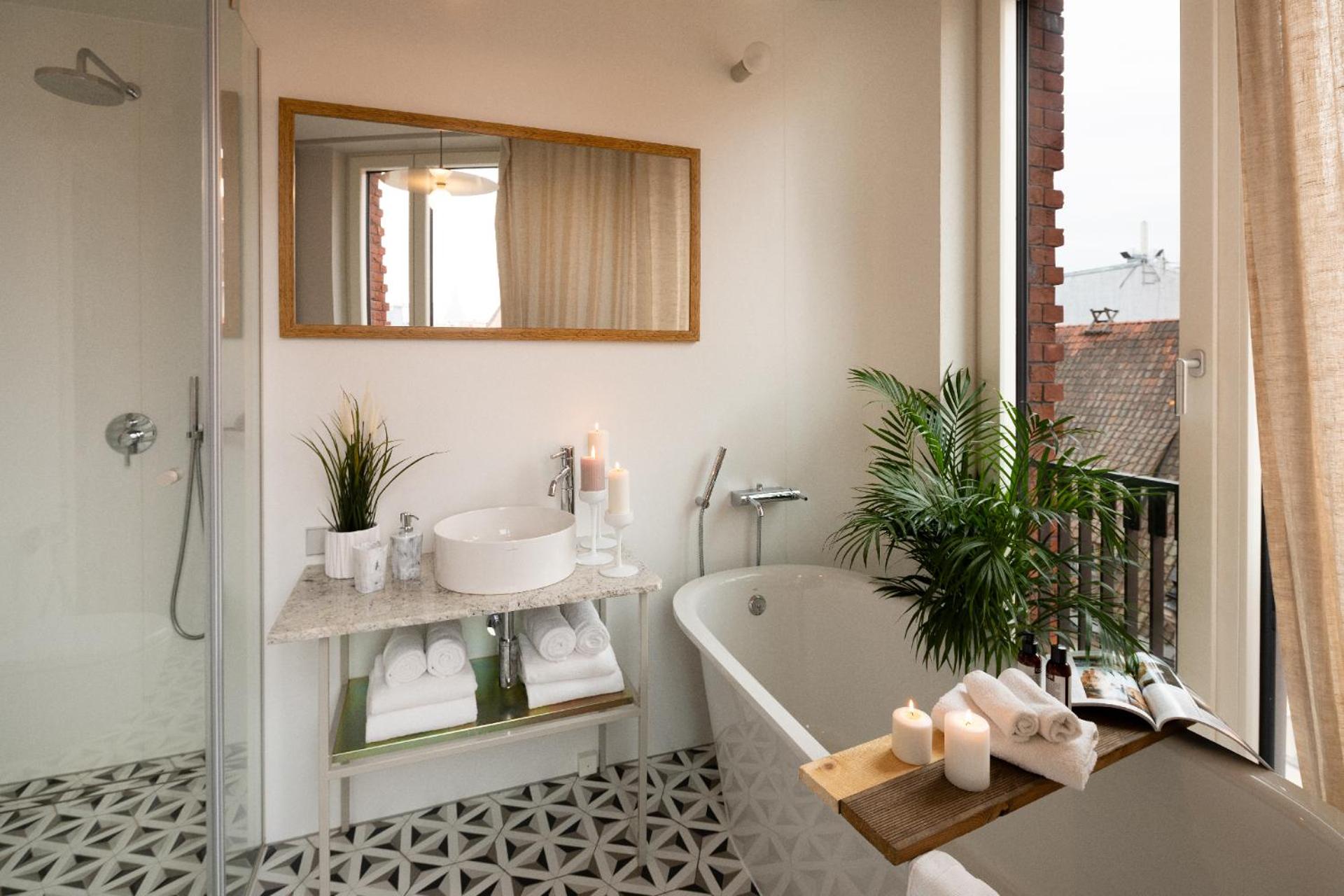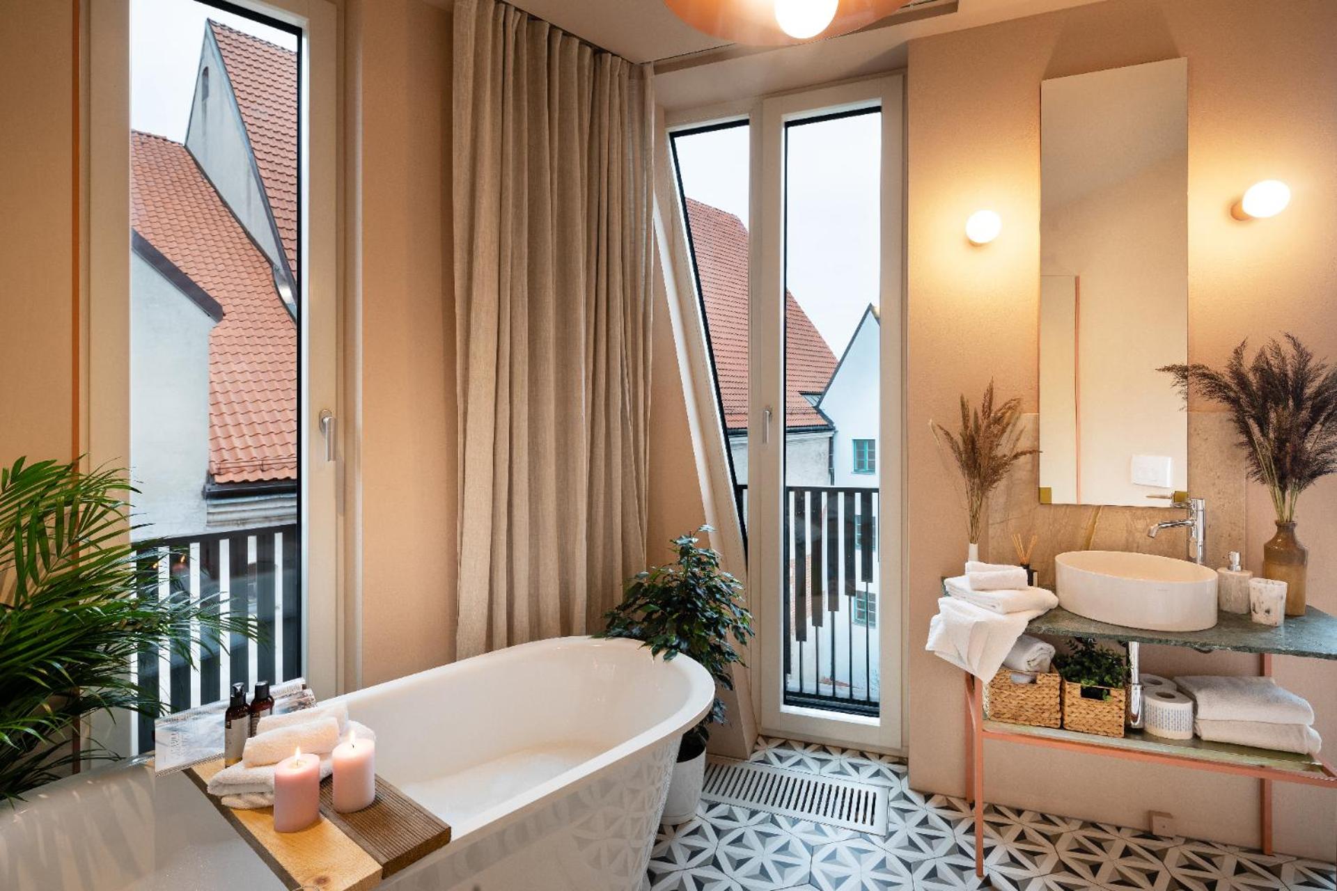 I would like to highlight the hotel staff. Even though they are not present 24/7, they respond to messages within minutes. During my stay, they refilled the coffee and toilet paper. The rooms also offer a beautiful view of the surrounding historic buildings. I especially loved the huge, luxurious bathroom!