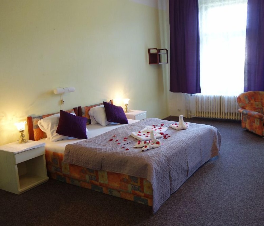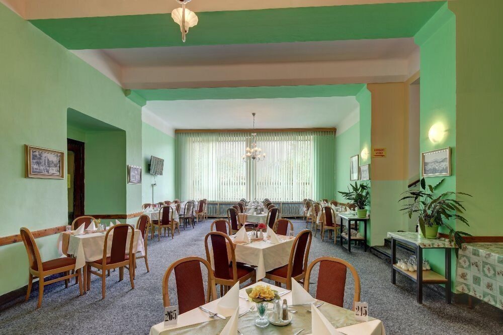 Das Hotel liegt im Kurzentrum von Marienbad etwas erhöht in Hanglage. Die meisten Zimmer haben Balkon und einen wunderschönen Blick über den Ort (sollte man als Wunsch bei Buchung angeben). Das Haus ist aus der Gründerzeit und hat entsprechend große Zimmer. Das Hotel und die Zimmer sind einfach und zweckmässig ausgestattet. Sehr bequeme Betten. Badezimmer klein aber ok. Sehr freundliche deutschsprachige Rezeptionistin. Parken kann man für Euro 2,10/Tag gegenüber dem Hotel. Reichhaltiges Frühstücksbuffet mit lokalen Produkten, aber nur eine Stunde von 8:30 bis 9:30 (ab 09:00 waren die Rühereier aus und wurden nicht mehr nachgebracht). Das Servicepersonal spricht nur tschechisch. Wir hatten Halbpension gebucht und das Abendessen mit regionaler Küche war sehr lecker. Buffet mit drei warmen Gerichten und Dessert. Getränke zum Abdenessen kauft man am Automaten, dadurch sehr preiswert. Wegen der herausragenden Lage mit Panoramablick und des guten Preis-/Leistungsverhältnisses kann ich das Hotel empfehlen, wenn man mit einfacher Ausstattung und wenig Service zufrieden ist. Sehr beliebt bei tschechischen Gästen..