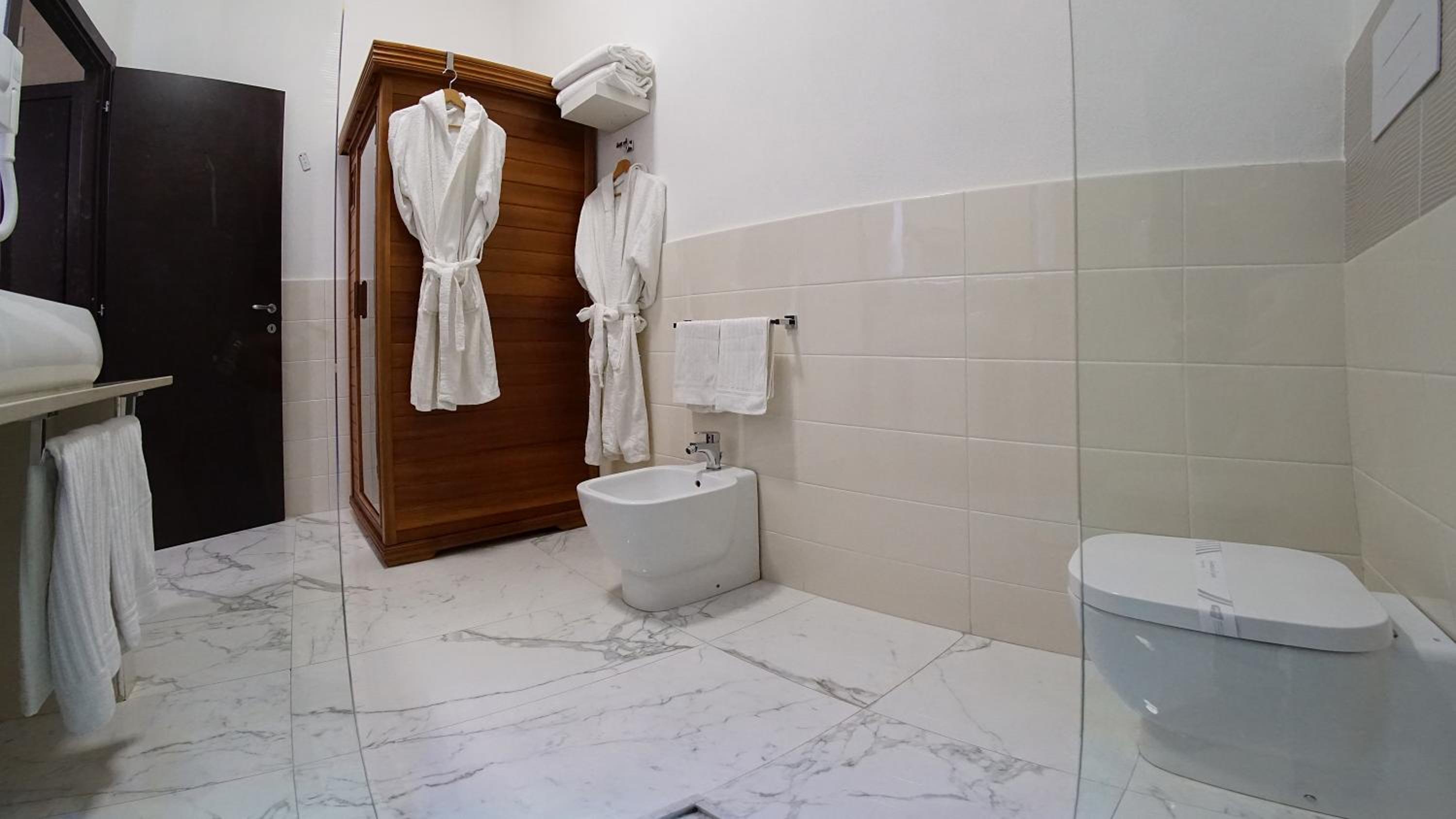 The spacious and vibrant rooms at Beverello Suite are thoughtfully designed with air conditioning, flat-screen TVs, and mini fridges. Guests can unwind in rooms equipped with satellite channels or indulge in luxury in select rooms featuring a spa bath. The private bathrooms are stocked with complimentary toiletries and a hairdryer for added convenience.