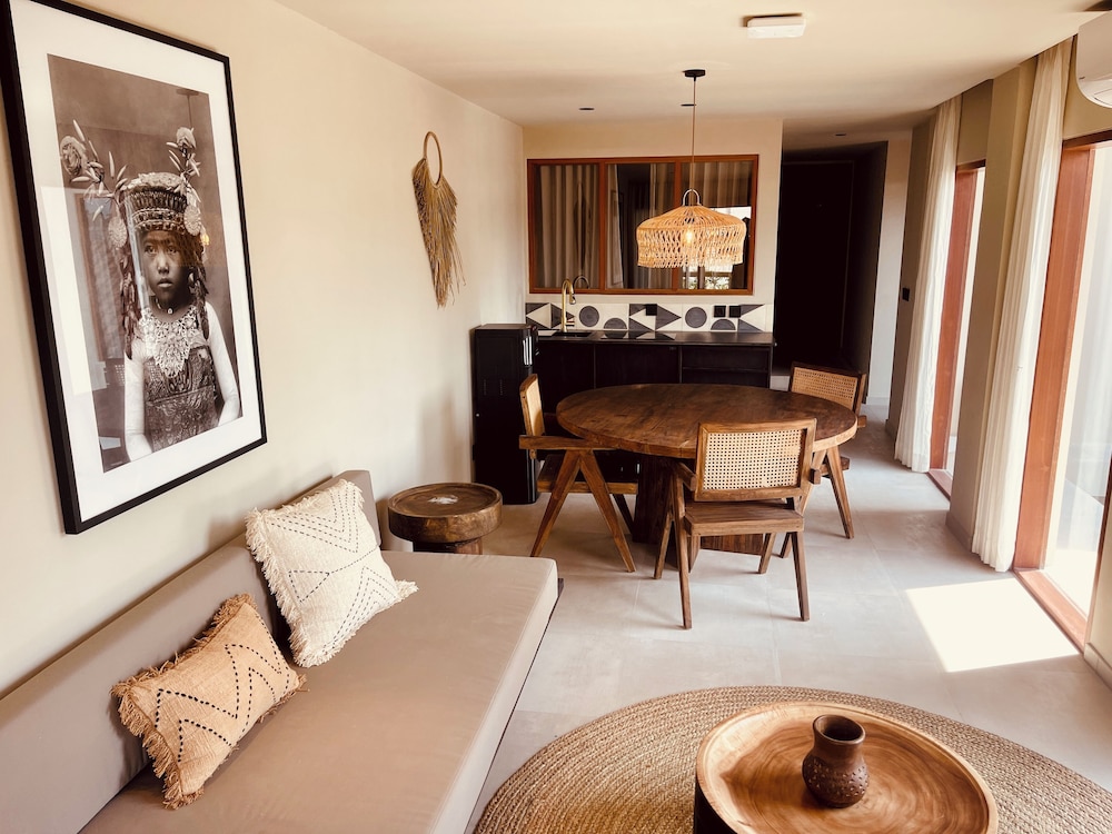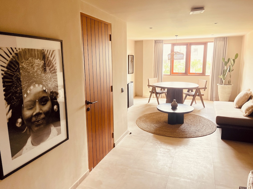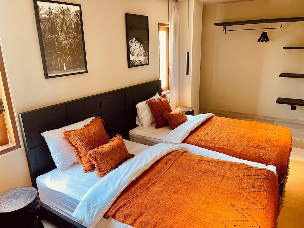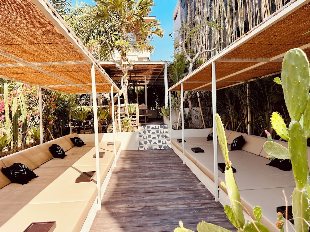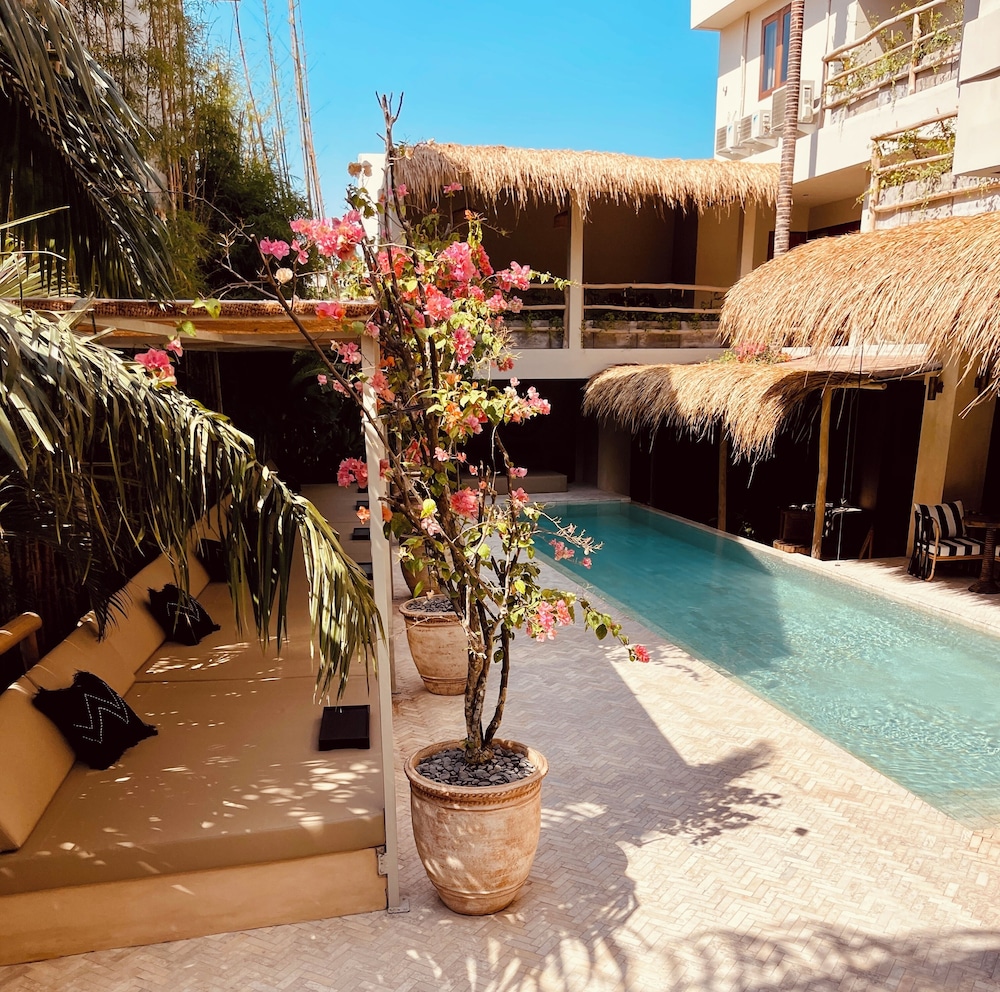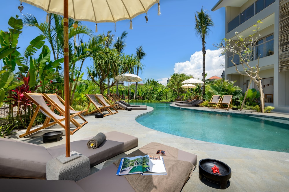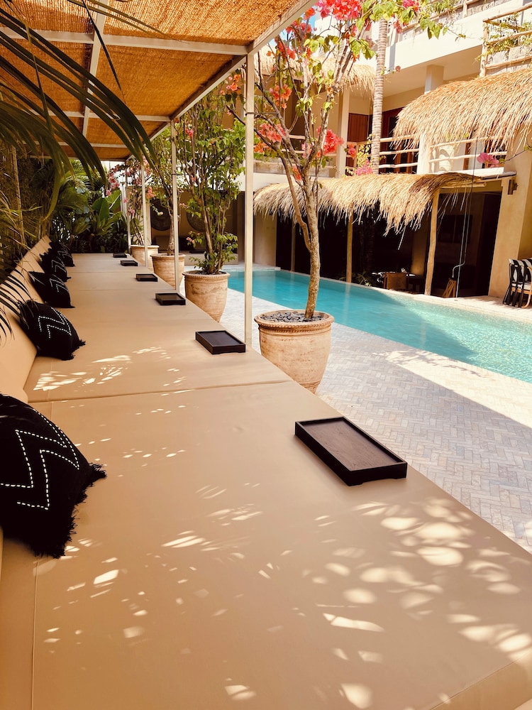 This property is beautifully decorated with earth tones and very cute decor- aesthetically very pleasing- you can tell it was professionally decorated which I appreciate! All staff were a 10 out of 10- professional and accommodating. This place has two pools, an adequate number of pool loungers, outdoor working areas, a small gift shop, and an excellent on-site bar with very delicious and creative cocktails. Some rooms are still being worked on including what looks to be some promising massage rooms. The only downside was I believe some rooms are dorm rooms and during my first night, there were some very loud young people who came into their rooms next door to mine being very noisy in the middle of the night. There is no cafe/restaurant on-site which would have been nice to have, but it wasn’t a big issue as you can easily order food on Grab. It’s located 5 min walking to the beach which is also a great positive! Lots of restaurants and shops around to explore. I would definitely stay here again if I come back to the Canggu area. :)
