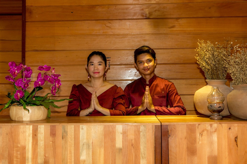 From the moment we arrived, the staff were superb. Kind and attentive yet genuine and not overbearing. We stayed in what looks like an extension of the original hotel so the surrounds and reception area are still a work in progress. However, the individual villas in a typical Khmer style with a private pool were an absolute delight, perfect when travelling as a young family. No words can express the gratitude for all the welcome 'home' snacks daily and even a 'Happy New Year' cake. Nothing seemed like too much trouble and we even received some stunning scarves as farewell gifts. Loved every minute. We saw the not-so-central location as an advantage, a peaceful oasis to come back to at the end of a busy day. The only noise was a cute rooster waking us every morning and distant drumbeat from the Cambodian Circus (just across the road) every night. We highly recommend this wonderful place to anyone who is looking for an authentic and unforgettable Cambodian experience.