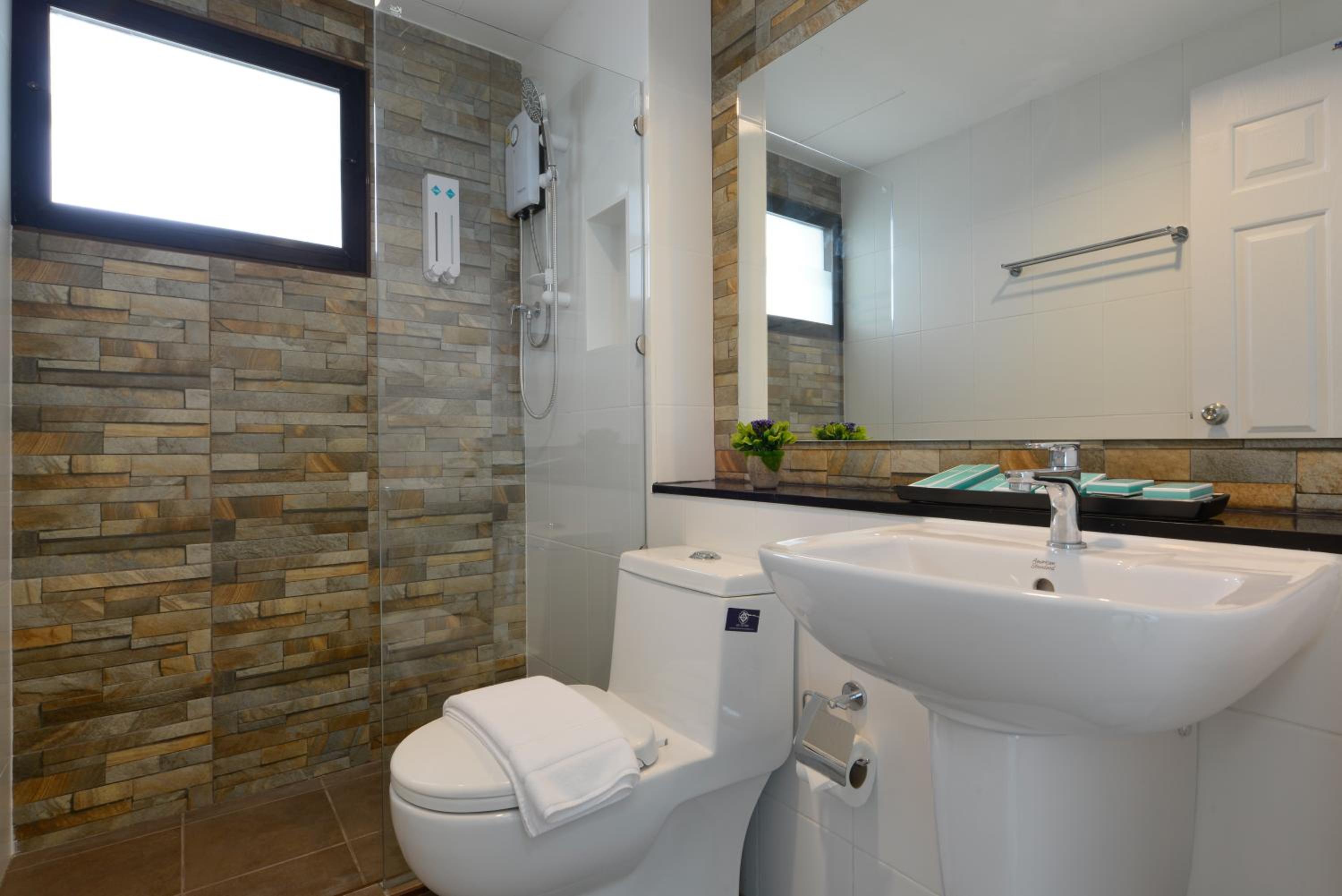 ฝักบัวน้ำไหลแรงดี สระผมสะใจมาก ที่ล๊อบบี้มีบริการชา กาแฟ ขนมปังที่เด็ดสุดๆคือมีปาท่องโก๋พร้อมเครื่องอบให้ร้อนอร่อยๆด้วยค่ะ