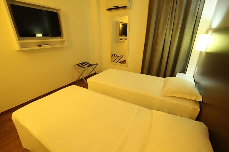 Quarto claro, silencioso, tamanho adequado para curta estadia, roupas de cama brancas e limpas, cama confortável, chuveiro gostoso. Café da manhã muito bom e farto, com várias opções de frutas, sucos, bolos, pães. Quanto ao pessoal da recepção, tanto de dia quanto de noite e também as moças que servem o café da manhã, são todos extremamente educados e atenciosos!!!