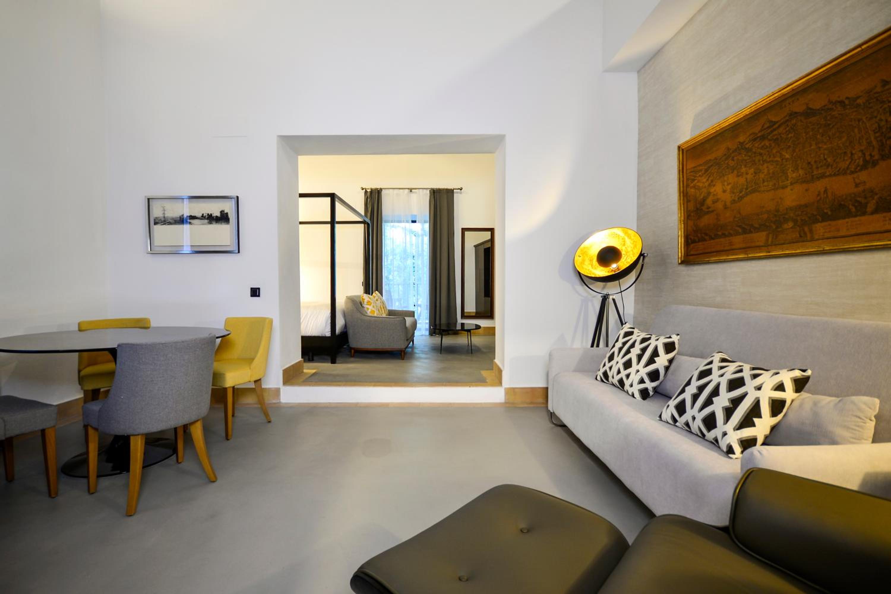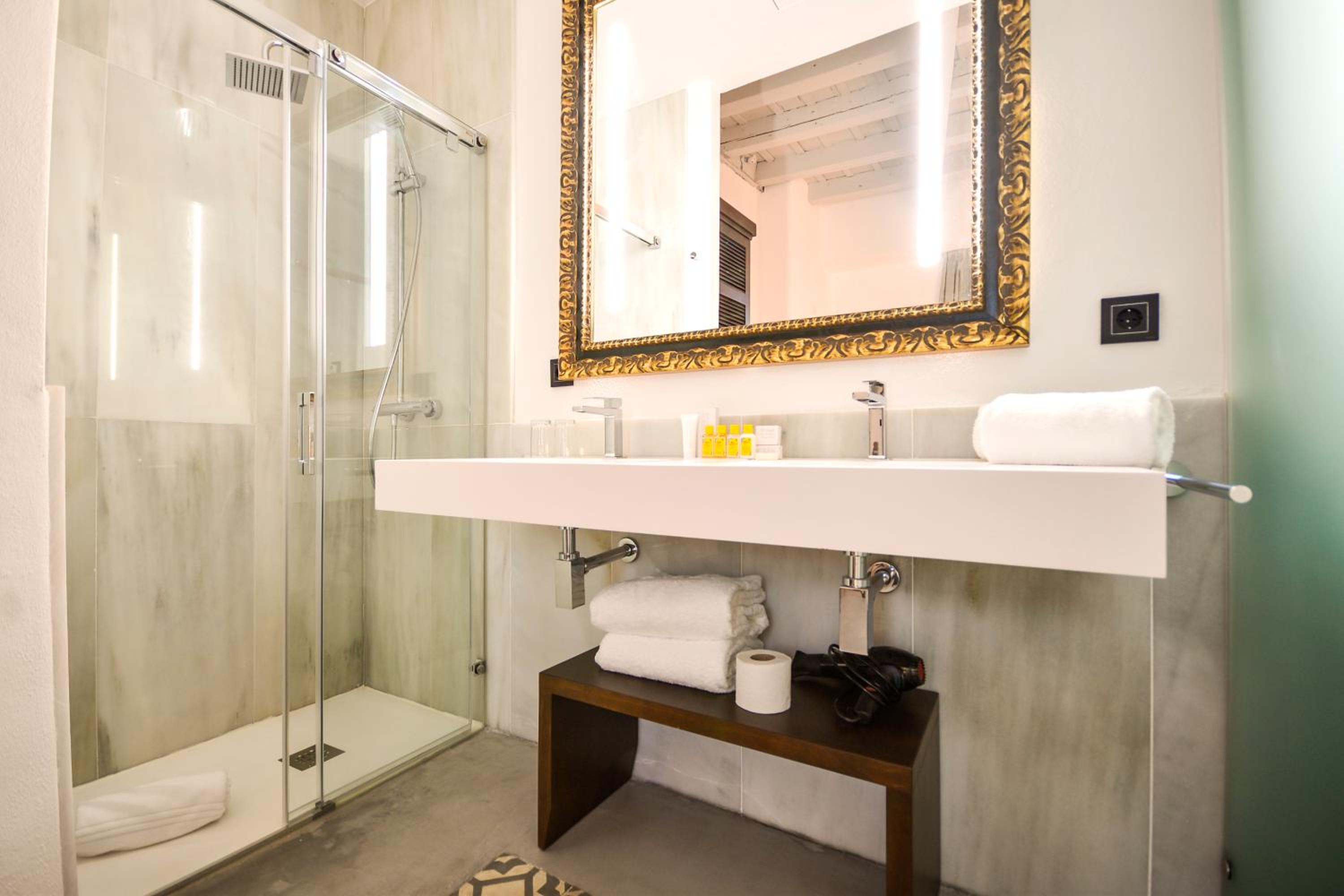 Hotel Legado Alcazar in Seville offers elegantly designed rooms with modern amenities including air conditioning, flat-screen TVs, and luxurious spa baths in superior rooms. Relax in comfort and style during your stay.