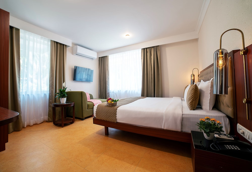 We are really happy about our staying in this hotel. It is very quite, calm, clean. Staff is very very friendly, cookery team is perfect, especially Mr.Bhim Singh, he cooks absolutely delicios food (European dishes also). One proposal is to vary (diverse) breakfasts. The bed is huge with high-quality matress and bedclothes, bathroom fitment is new and clean. We liked coffee-set and complimentary drinking water. One disadvantage is too noisy A/C. In general it looks like 4 star hotel, we are satisfied.