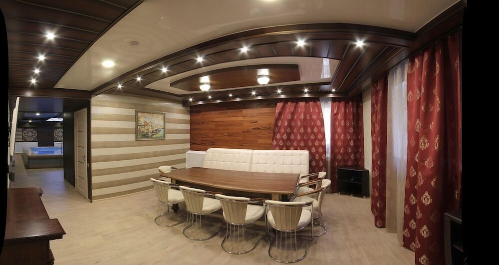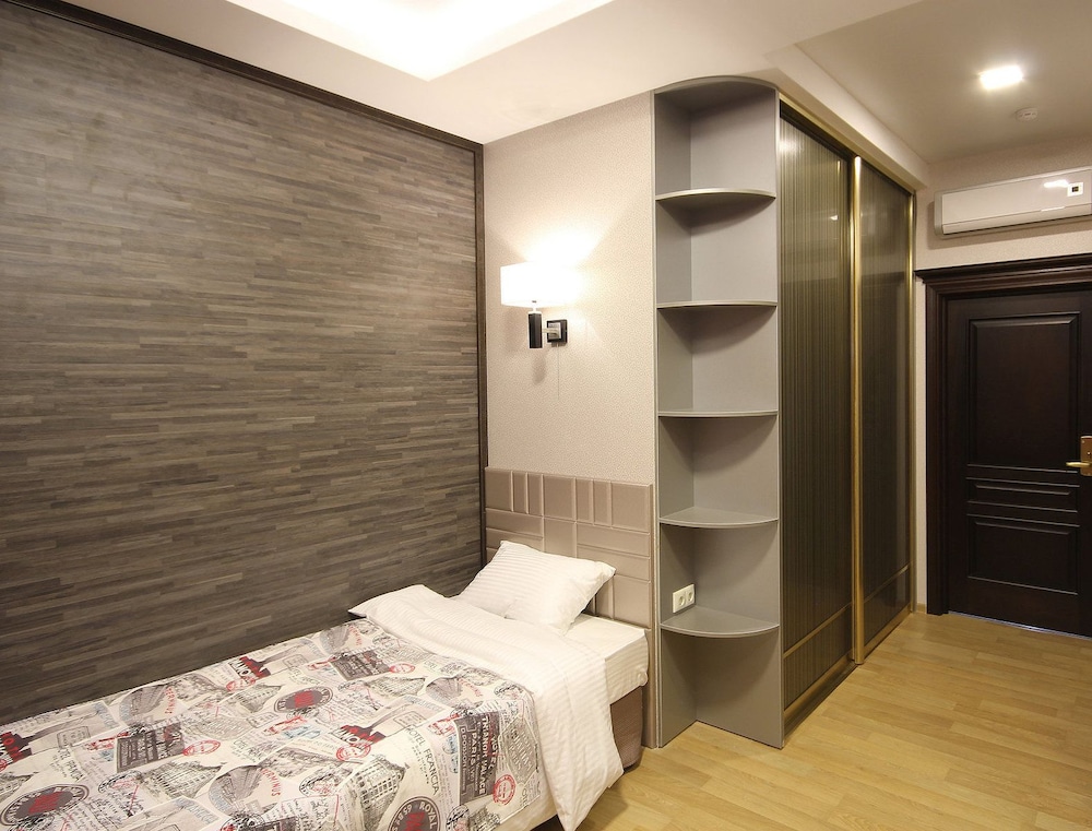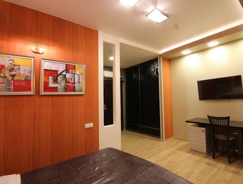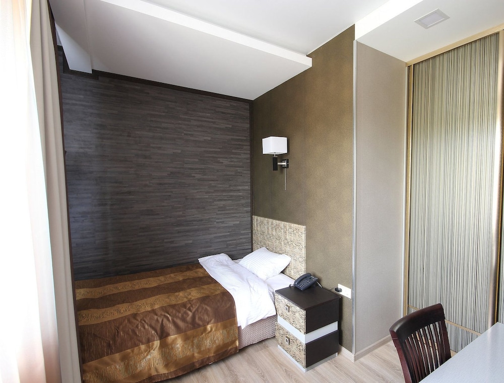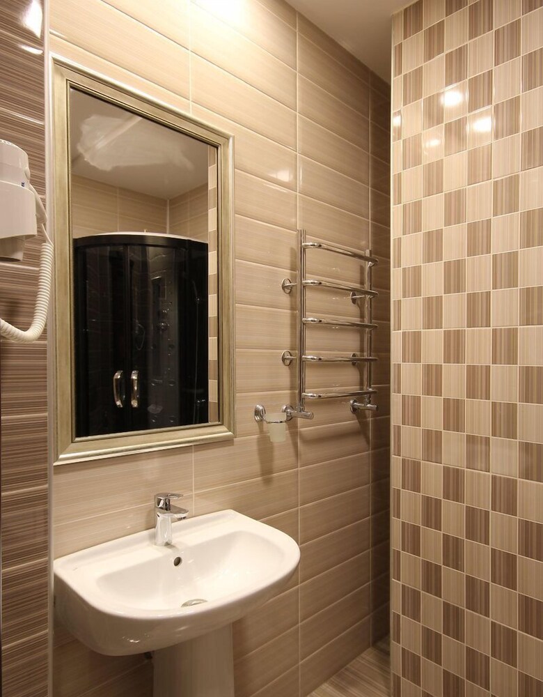 Excellent hotel. Friendly and welcoming staff. Breakfast is rather basic. Remote from the centre, but bus stop is very close to the hotel. Surrounded by residential area and private houses. Walking distance to the “Zhuravli” war memorial with excellent views over the city. Clean sauna, steam room and small pool with cold water available for an additional charge, may need to book in advance. Tea kettle was not included in the room.