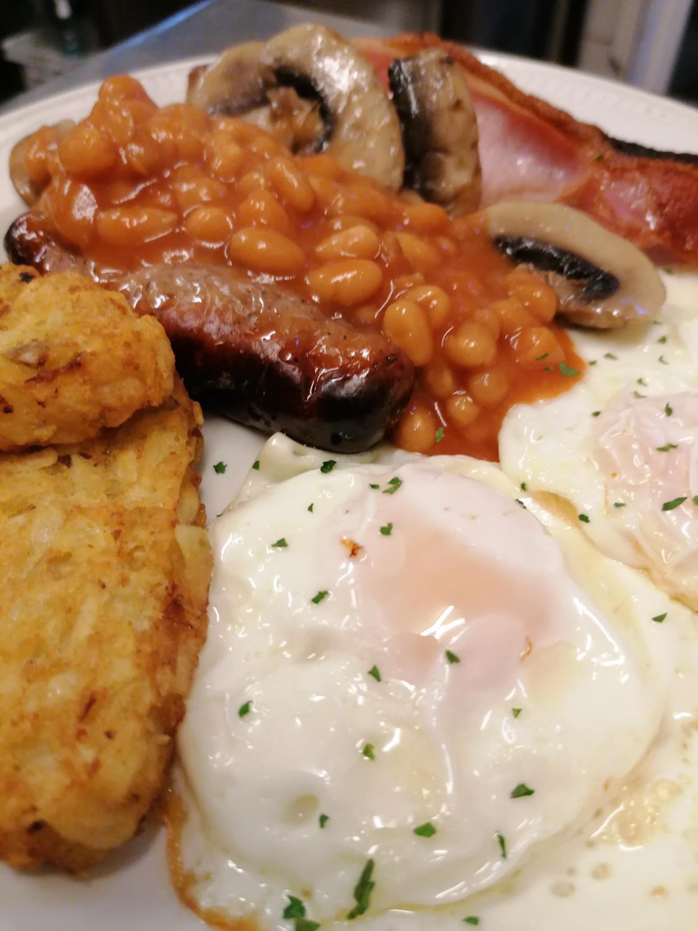 The breakfast was poor, especially at £10 each. Most of it had been cooked in advance and kept warm, making the mushrooms rubbery and the hash browns tough.