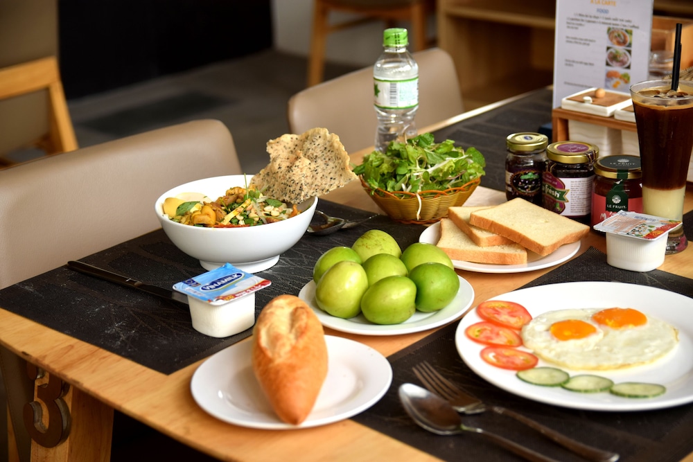 We had great time staying here. Its a hidden gem since theres so many hotels to choose from. Very peaceful and full of plants. Room was nice and spacious with a balcony. You can order breakfast with separate menu which includes pho. Pool is in top of the spa building which you can access through 2nd floor. If i come to da nang again i will stay here. I dont know why its rated 2 star hotel as it should be 4 stars.