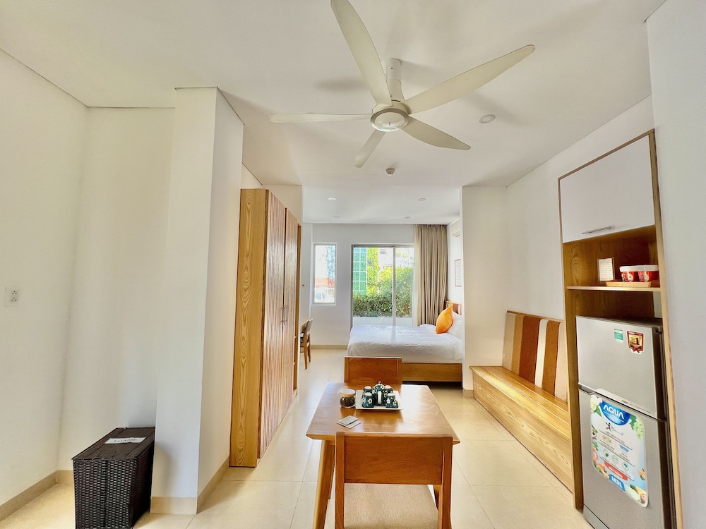 It was perfect with kitchen and good layout. The local market so close and the beach and plenty of restaurants all walking distance. The staff did not have very good english, but nothing google couldn't resolve. They staff made us feel very comfortable. I would stay there again as it is new, clean and good location. There is construction next door, but in Da Nang, there is construction next door to everything. They only work 7am-3pm. Quiet location in the evening and night. Comfortable beds.