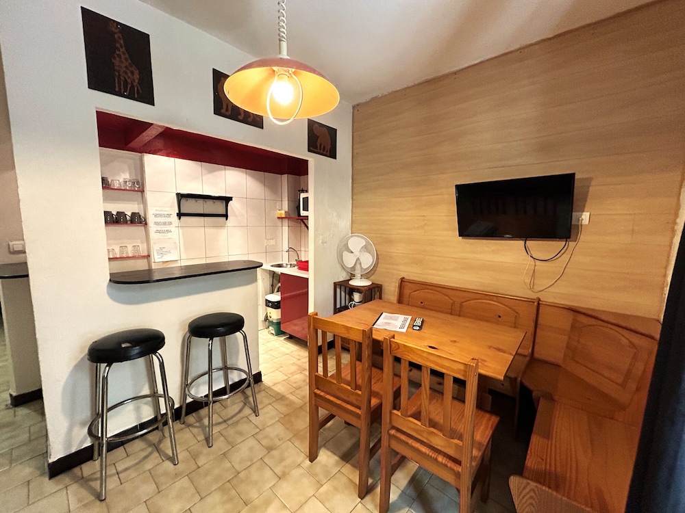 Tres bon accueil studio no 15 de belle surface bonne équipement pour 4 personnes mauvaise odeur aucune finition faux plafond qui pend dans la salle de bains carrelage qui se decolle etc et surtout tres sombre excellent petit dejeuner Laurent