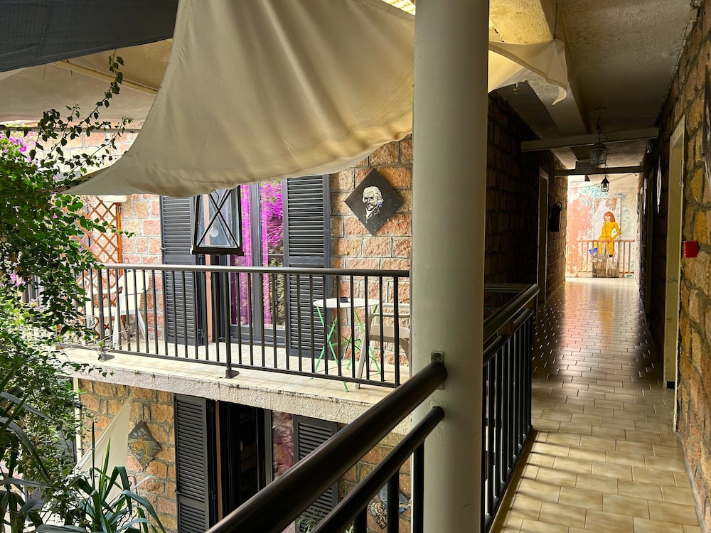 Muy básico, cama mejorable y almohada muy incómoda. Es una especie de hostel en el sentido de que ponen la cocina a disposición de los clientes, puedes hacer uso de nevera, congelador, tetera, tostadora... y luego lavas lo que has usado. No hay cafetera. También ofrecen desayuno de pago. No hay ascensor. Algunas terrazas están mejor que otras, unas son con vistas al mar, otras a un patio interior o al propio patio-terraza cubierta del hotel por donde están pasando los huéspedes