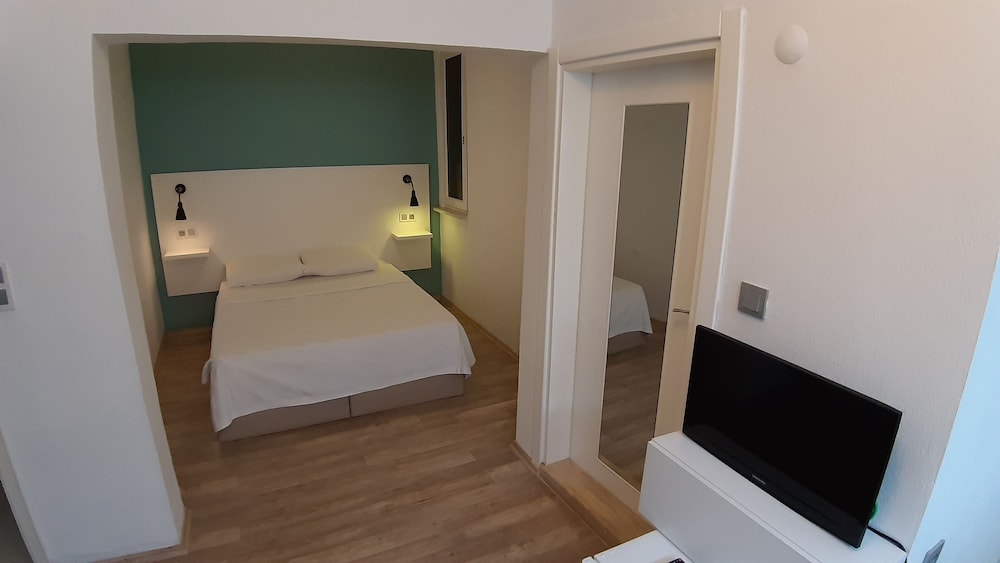 Otelin konumu çok merkeziydi. İki adım atınca çarşıda olabiliyoduk. Sahillere giden minibüslerin durağına da çok yakındı. Biz bodrum katta kalmamıza rağmen odanın içi yeterince ışık alıyodu. Sokak üstünde kaldığımız için akşam çok gürültü olur diye endişelenmiştik ama dışarının sesi hiç gelmedi. Odanın temizliği, çarşaflar, banyo ve tuvalet hepsi çok temizdi. Sabah kahvaltılar idealdi. Her gün farklı reçeller yedik. Bu sayede daha önce yemediğimiz reçelleri deneme şansımız oldu. Kahvaltı da gelen hamurişleri el yapımı ve çok lezzetliydi. Oteli işleten beyfendiler çok kibar ve ilgiliydiler. Fiyat performans olarak çok tatmin edici vir yerdi.