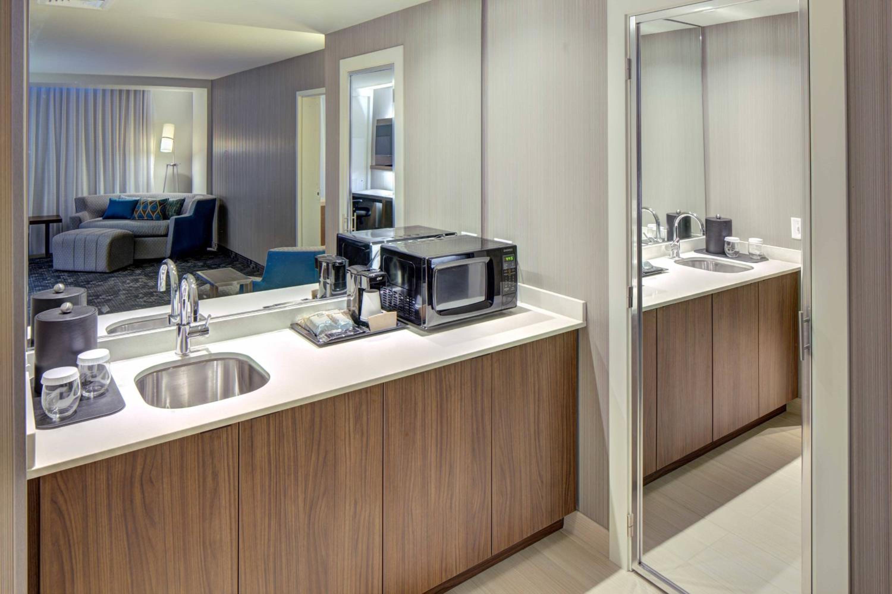 Select rooms at Courtyard by Marriott Appleton Riverfront feature a kitchenette equipped with a fridge and microwave, providing added convenience for guests during their stay.