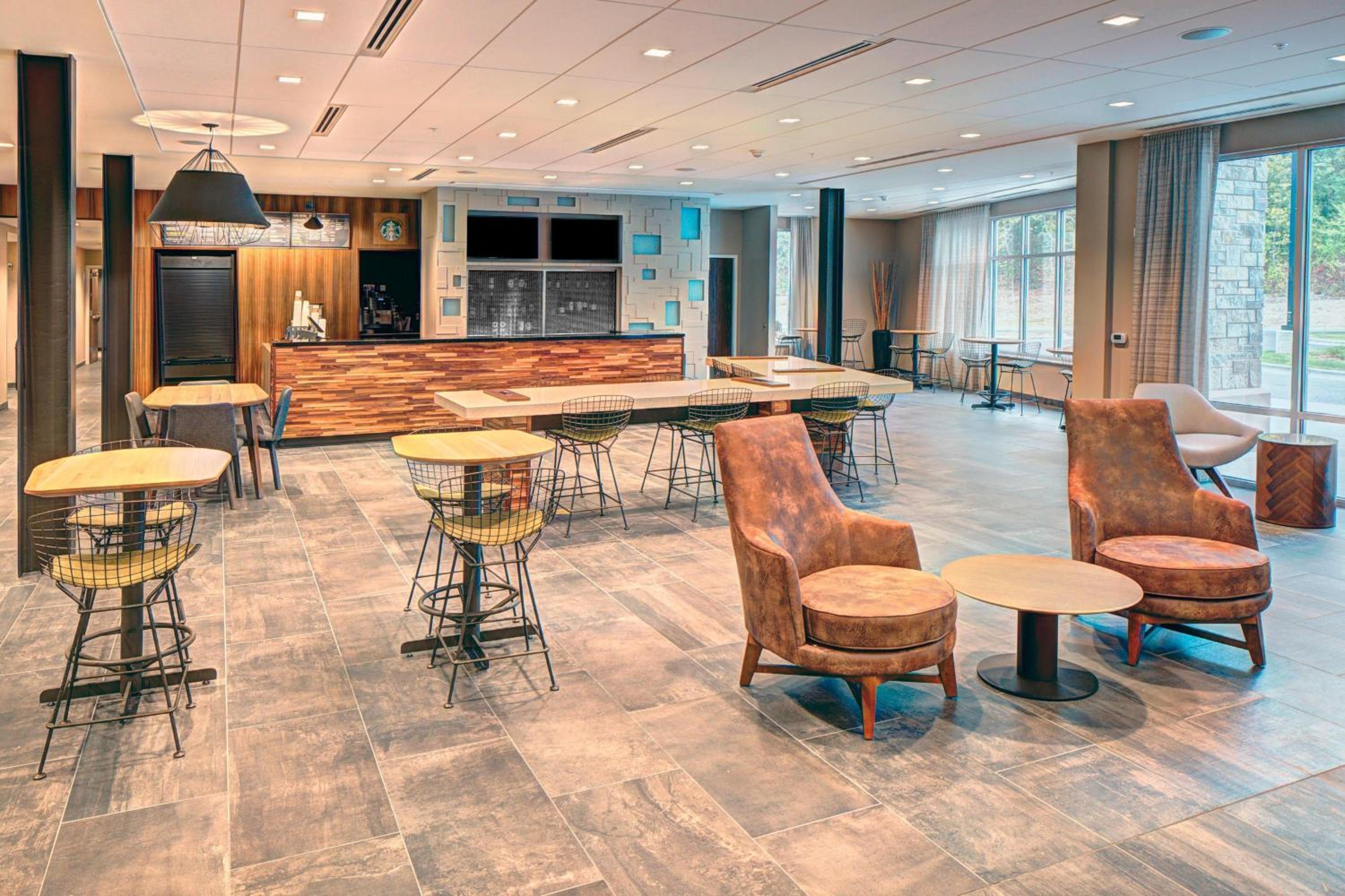 Clean room. Lots of food options. Great location. Cozy lobby.