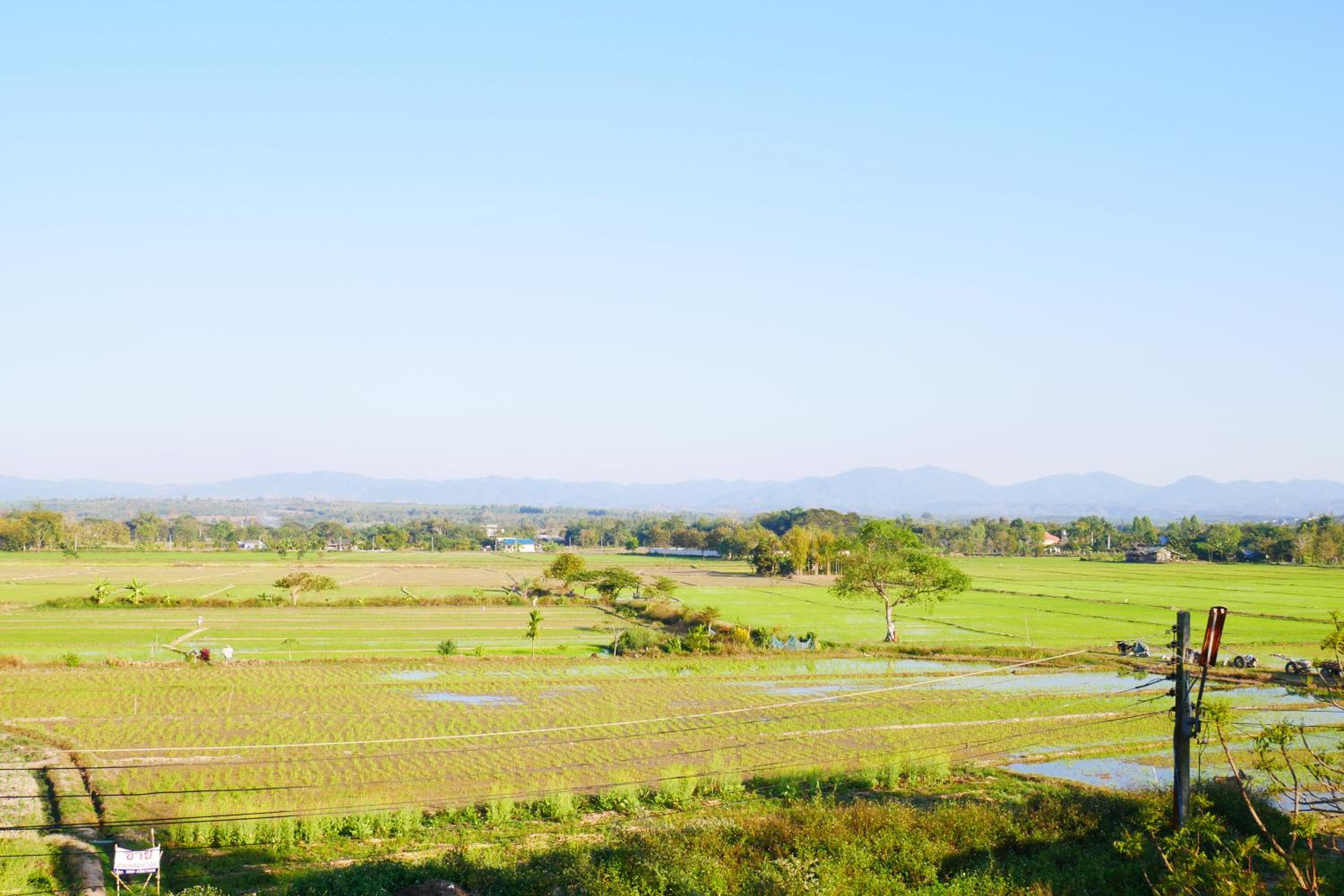 Honestly, you pay for what you get. For the cost of less than £10 a night, you get a double bed, shower, AC, towels, TV. Yes, it’s a little basic, dirty and needs a bit of TLC, but it’s also super cheap. You even get a lovely view of the local rice fields.