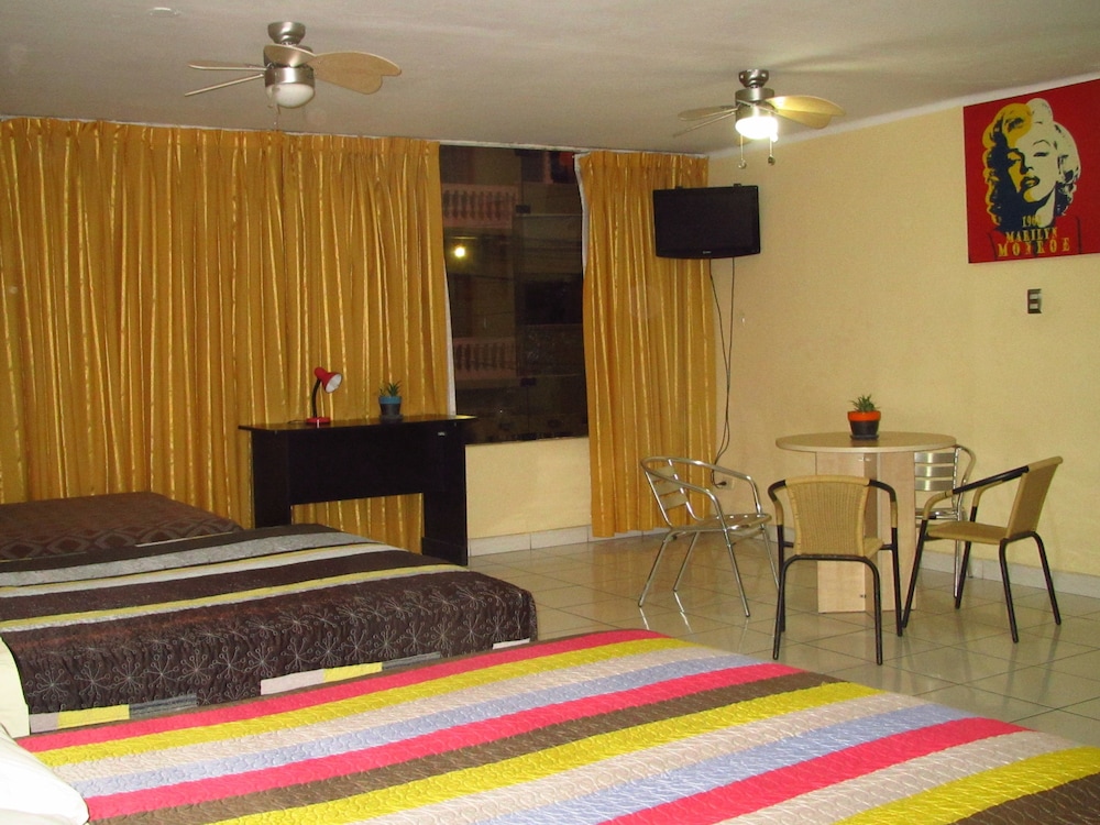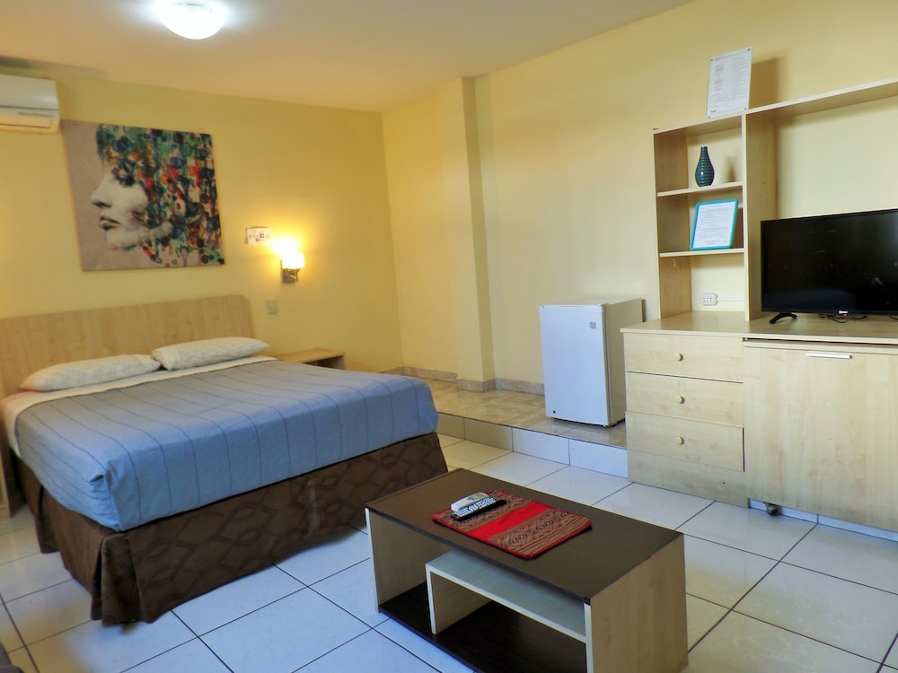La habitación amplia, con un salón comedor cocina integrado, aunque los utensilios de la cocina mejor no tocarlos. El dormitorio con televisión y cama cómoda, pero sin mueble para guardar la ropa, aunque sí un perchero con dos perchas, aire acondicionado que no funciona correctamente y con una ventana la cual entra mucha luz por la mañana y no hay manera de taparla. El baño pequeño pero funcional, aunque la presión del agua era demasiado baja para darse una ducha y el agua caliente muchas veces no salía. Les falta detalles para hacer sentir cómodo al cliente. No dan champú algo que debería ser un producto básico. Servicio de limpieza limitado por la mañana a unas horas específicas. La zona es buena y tranquila, pero les falta muchos detalles que deberían los dueños del establecimiento de mejorar y preocuparse para solucionar. Iba a quedarme más días y al final tuve que buscarme otra opción. Lo más triste es ver que a los dueños ni les importó, muy sobrados deben ir...