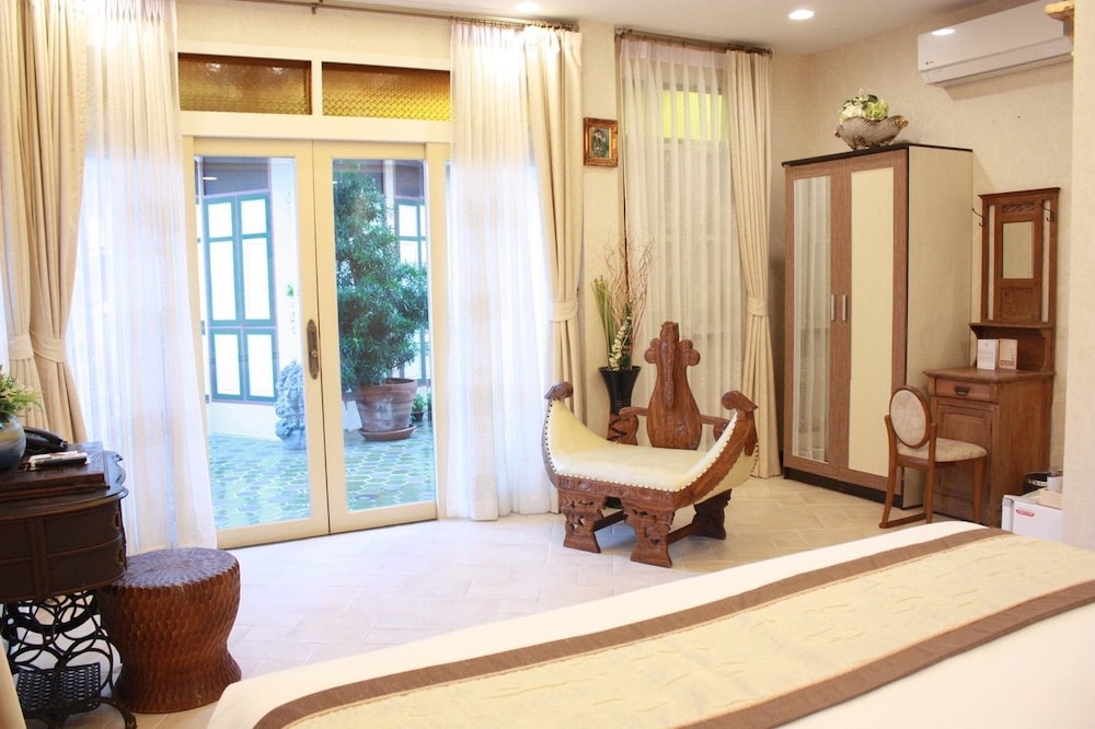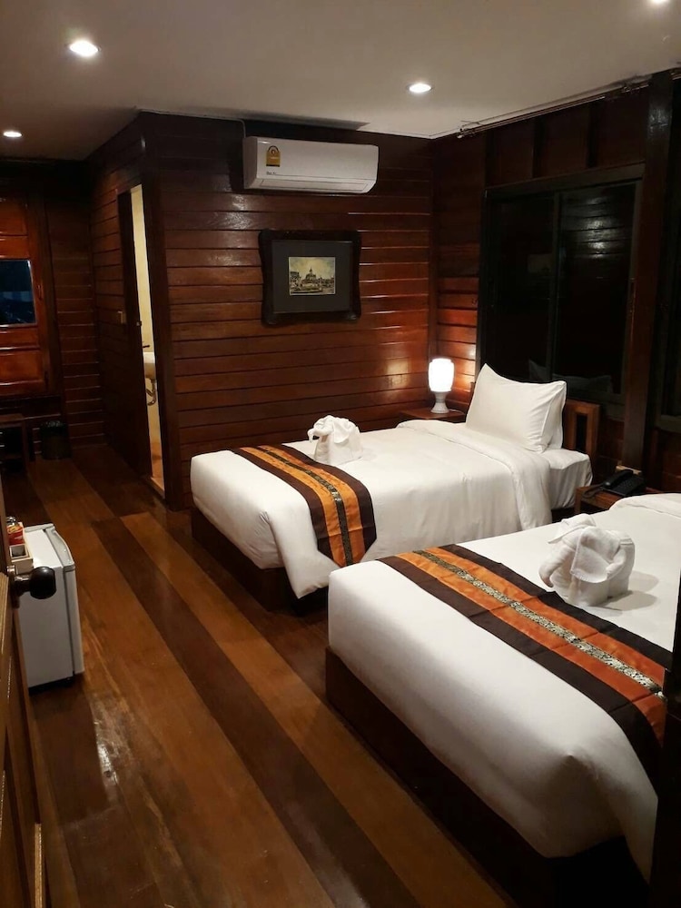 รร.สวย ตกแต่งสไตล์ไทยเดิมประยุกต์ อยุ่ใกล้ตลาดน้ำ สามารถเดินไปได้เลย ประมาณ 300 ม. มีมุมถ่ายรูปรวมถึง้รือนไทยและพิพิธ๓ัณฑ์ให้เดินเล่นได้ในรร. เตียงโอเค แต่มีหมอนให้คนละใบ ไม่มีหมอนให้กอด เลยนอนไม่สบาย แถมห้อง 201 superior ตกแต่งสวย เหมือนในรูปเลย ชอบมาก เสียตรงที่แอร์จะดังเป้นช่วงๆจนทำให้ตื่นตอนดึกบ่อย ส่วนอาหารเช้าธรรมดาไปหน่อย