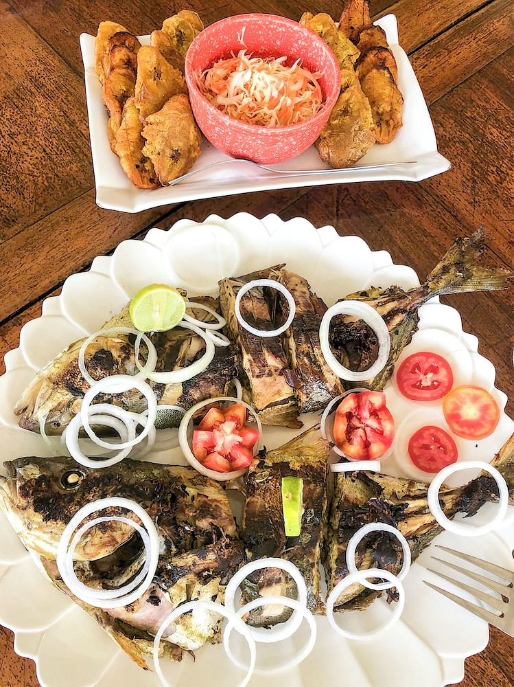 Beautiful place and great food! It is an amazing private little beach that you take a catamaran too. The room was lovely and clean and you could hear the ocean at night. Meals were served in front of the room with a beautiful view. The only downside is occasionally the tide shifts and some trash from Cap-Haitien washes up. This isn’t too bad at the hotel. We decided to go to Ile a Rat and it was much worse there. The service and food was great. Sophia was lovely and everyone who worked there was so kind and helpful.