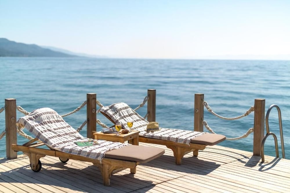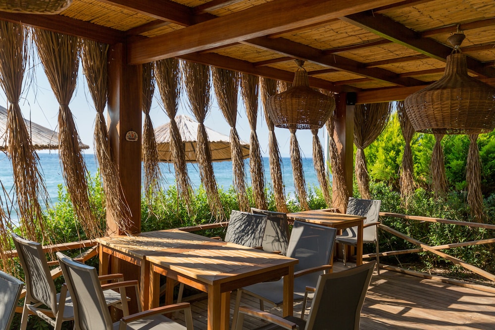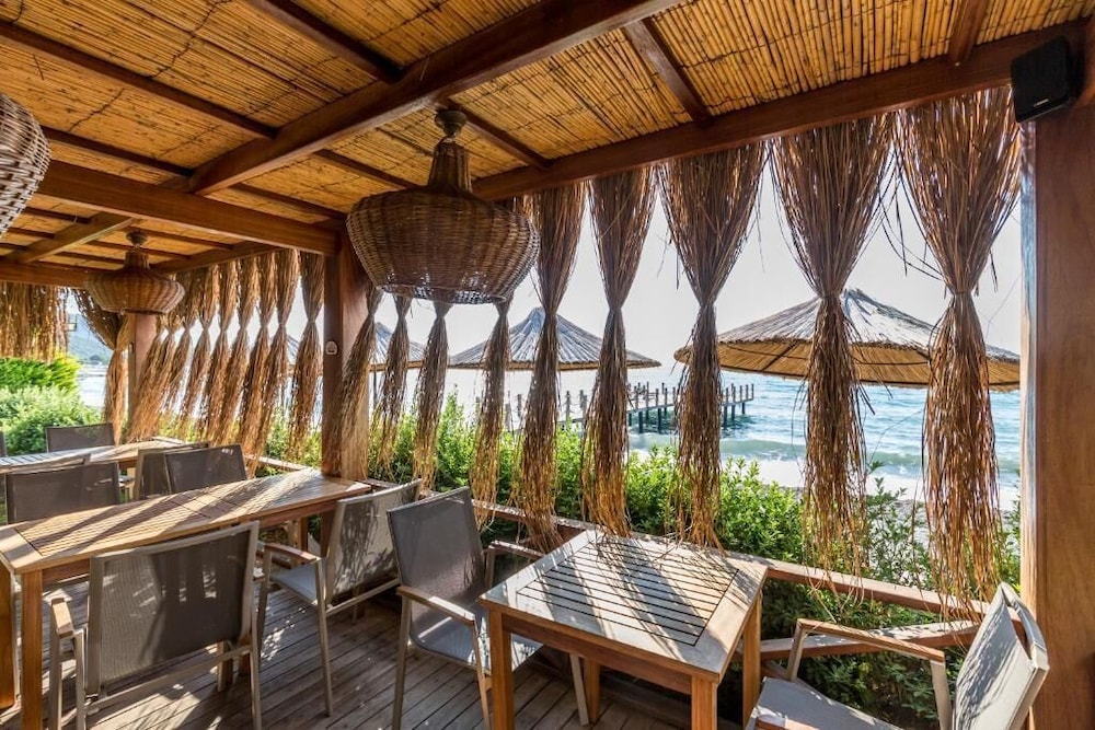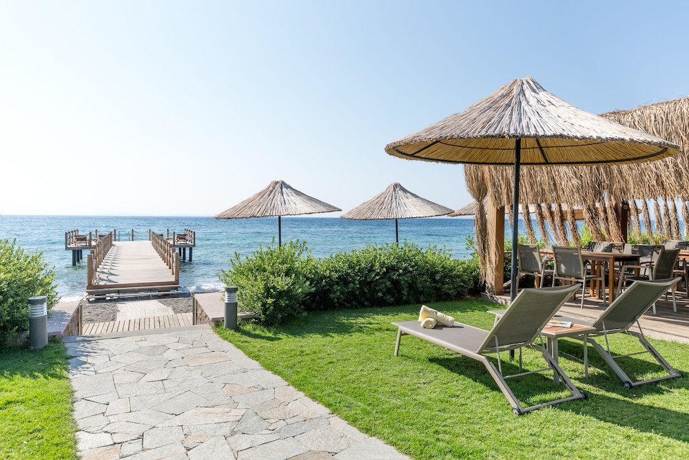 Beautiful new boutique hotel, beach front on a quiet coast of the Aegean. Owners present. Excellent food, breakfast. Beautiful gardens and set up.
