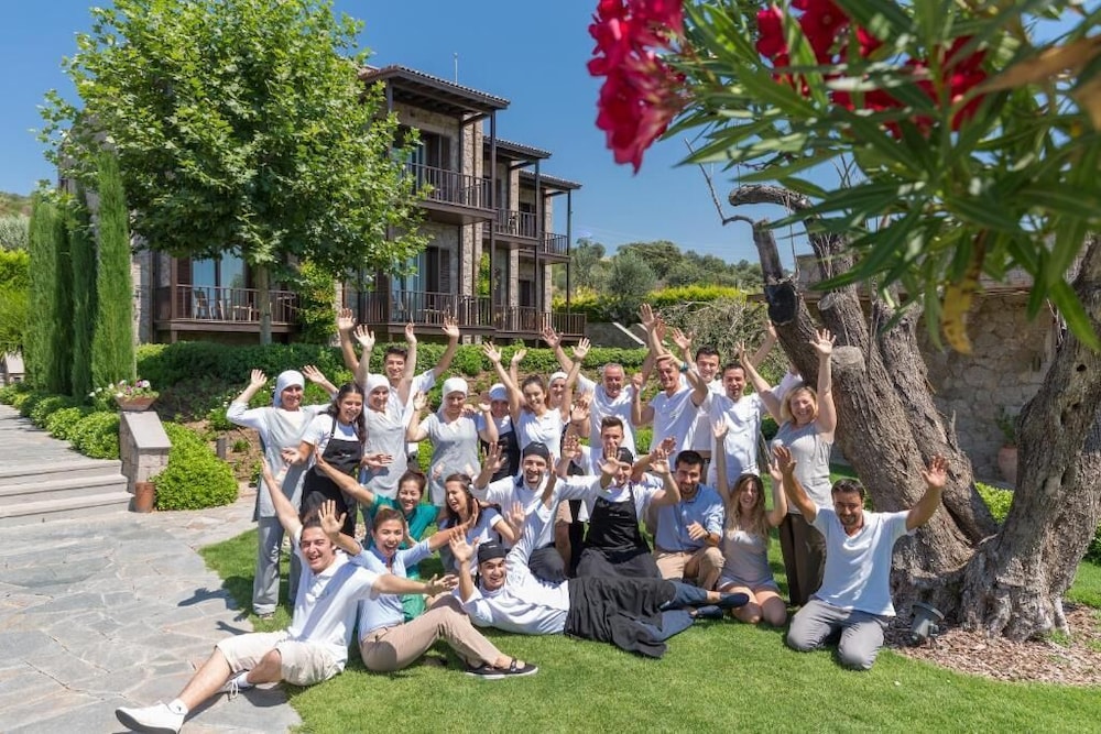 Asos hattında mucize gibi bir ortam ... Mükemmel temizlikte odalar, konfor, ve peyzaj... Plajı beklediğimden daha küçük çıktı ama bahçesindeki güneşlenme alanı çok daha iyi ve konforlu bu nedenle sorun olmadı . Otel az odalı küçük . Dışarıdan da plaja ücretli misafir alıyorlar . Otelin %100 dolu olduğu durumlarda şezlong sorunu oluşturabilir dikkat etmek lazım . Bunun dışında tam sessiz sakin ruhunuzu dinlendirebileceğiniz bir yer ..Akşam yemekleri dahil bu bir konfor sağlıyor . Yinede yemeklerin daha lezzettli olması önerisini yapabilirim . Bu standartta ve fiyatta bir otelde açıkça daha üst kalite lezzet anlamında yemek beklentisi oluşuyor . Personel çok genç ama iyi niyetl, ve kibar ve nazik . Mutlaka denenmeli .