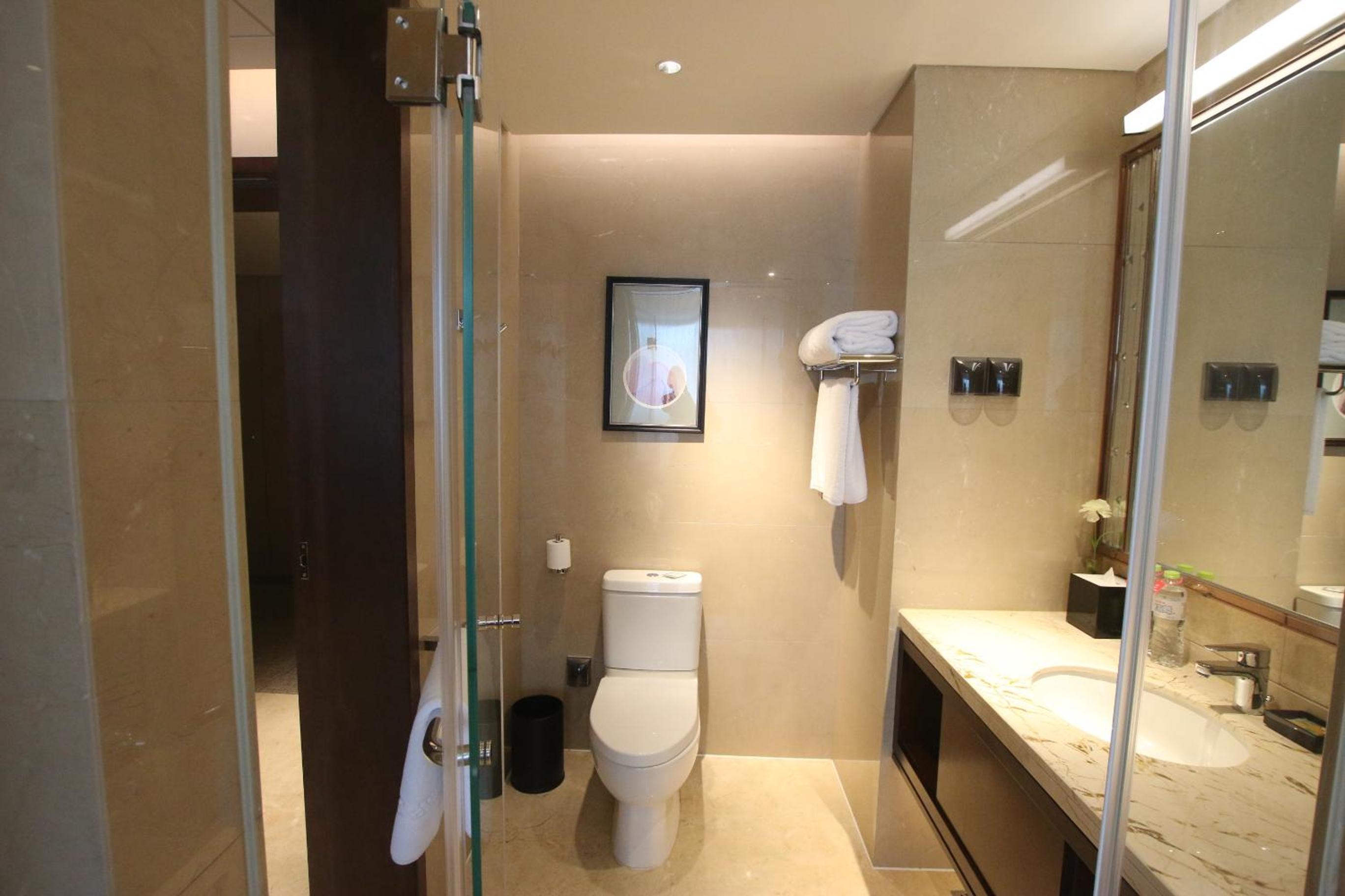 Ramada Jinan offers elegant guestrooms with free WiFi access, ensuring a comfortable stay for all guests. The air-conditioned rooms are well-equipped with modern amenities, including a flat-screen TV and a private bathroom with a bathtub.