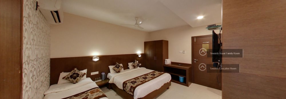Decent room. The hotel is located at approx 1.5 km away from the famous Mahakal temple. Rooms are spacious and decent but need maintenance in the washroom. The bed was king size with clean linen. Room services need improvement. The restaurant floor was not properly cleaned. Restaurant service is slow.