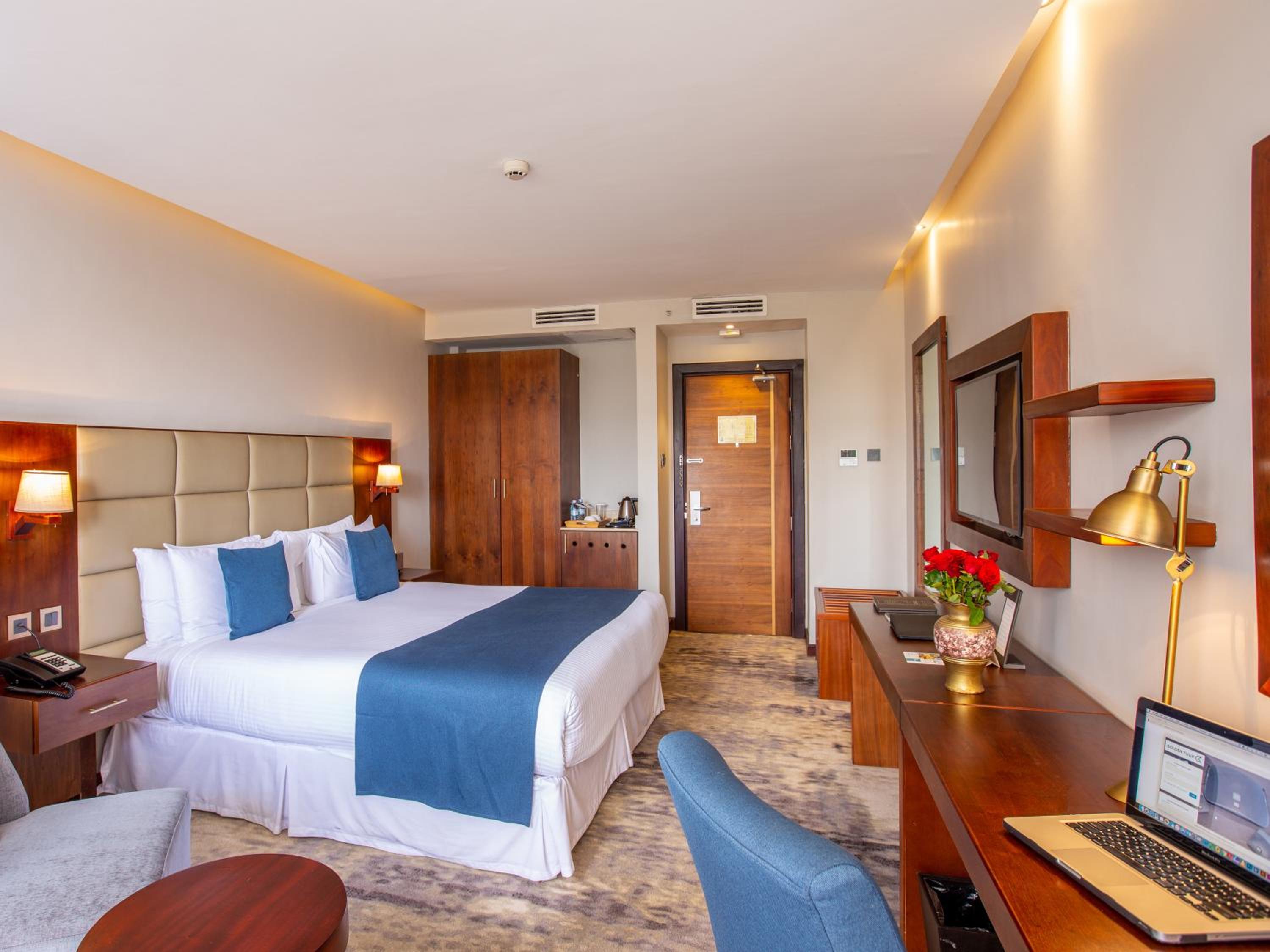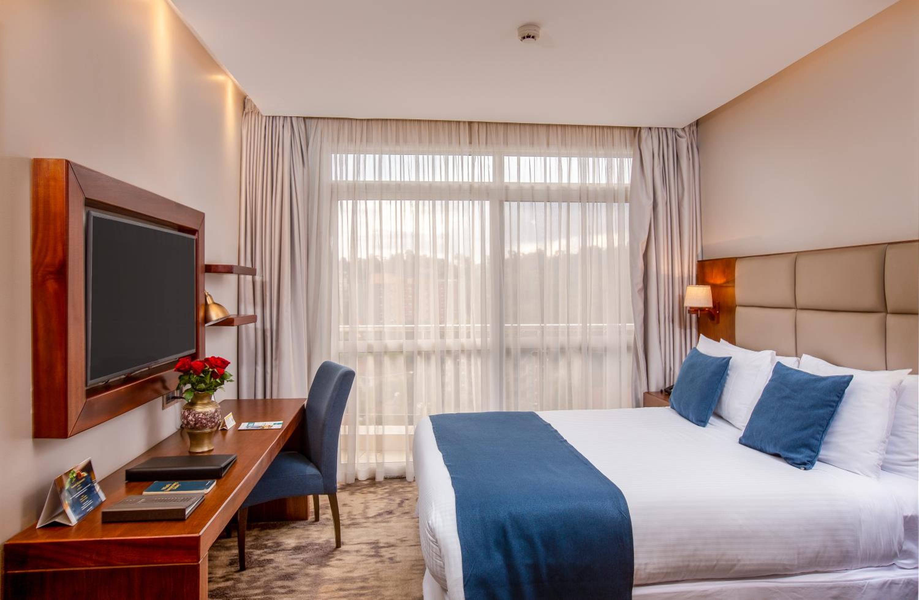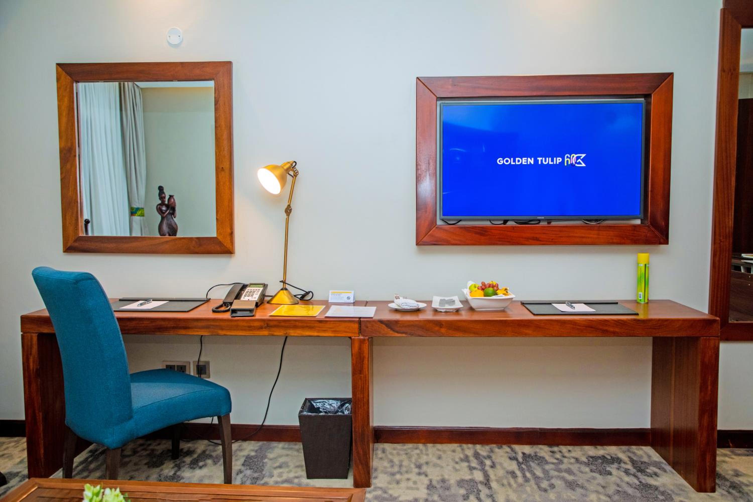 Golden Tulip Canaan Kampala offers elegantly designed rooms with modern amenities including air conditioning, flat-screen TVs, and private bathrooms. Enjoy ultimate comfort with complimentary slippers, toiletries, and a hairdryer provided in each room.