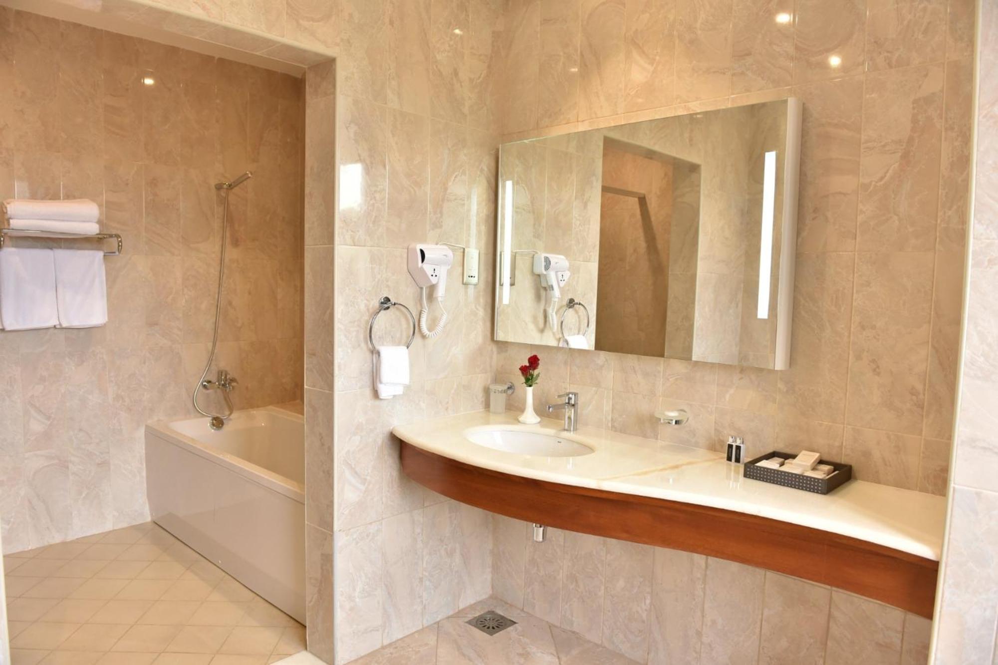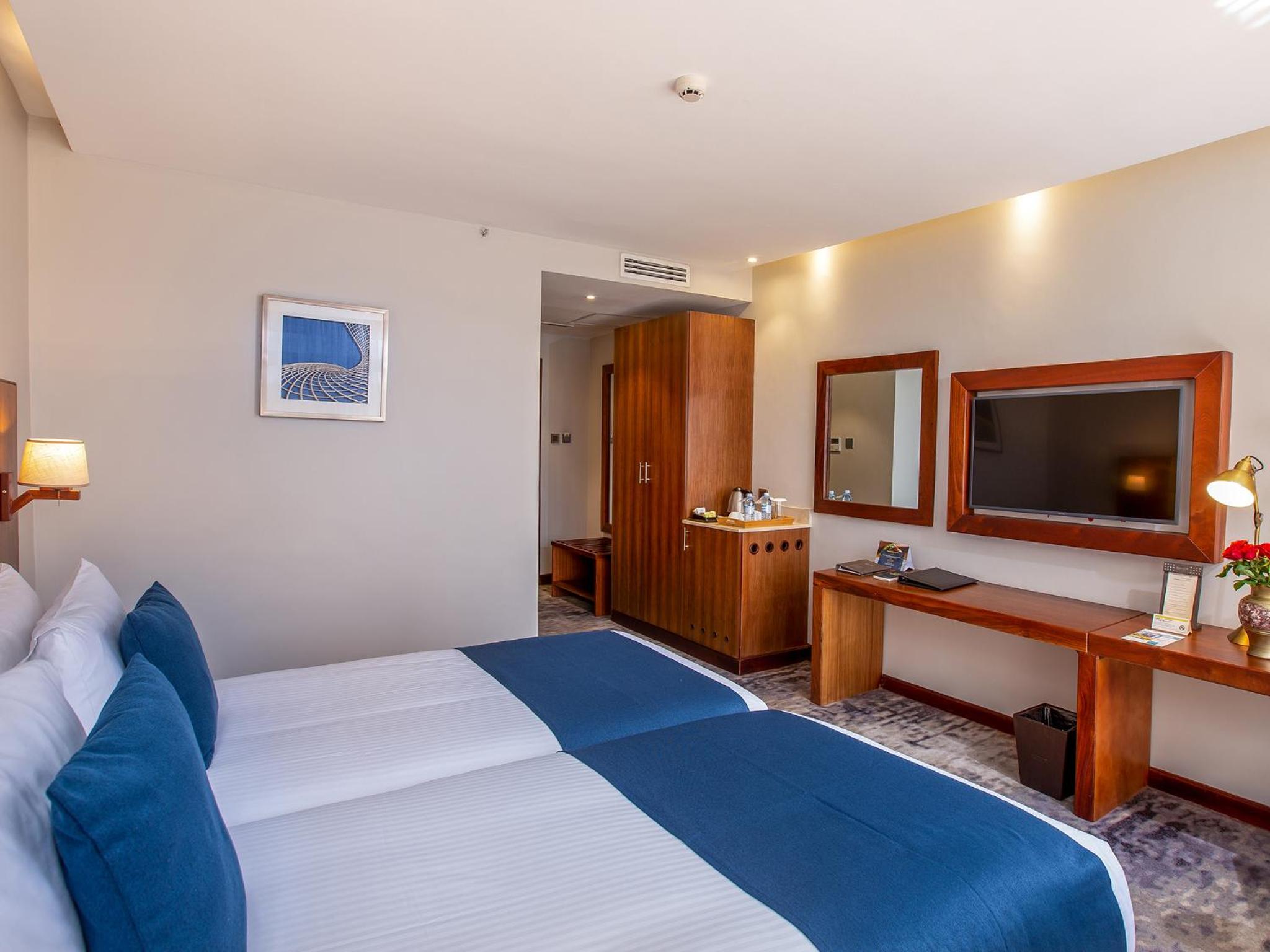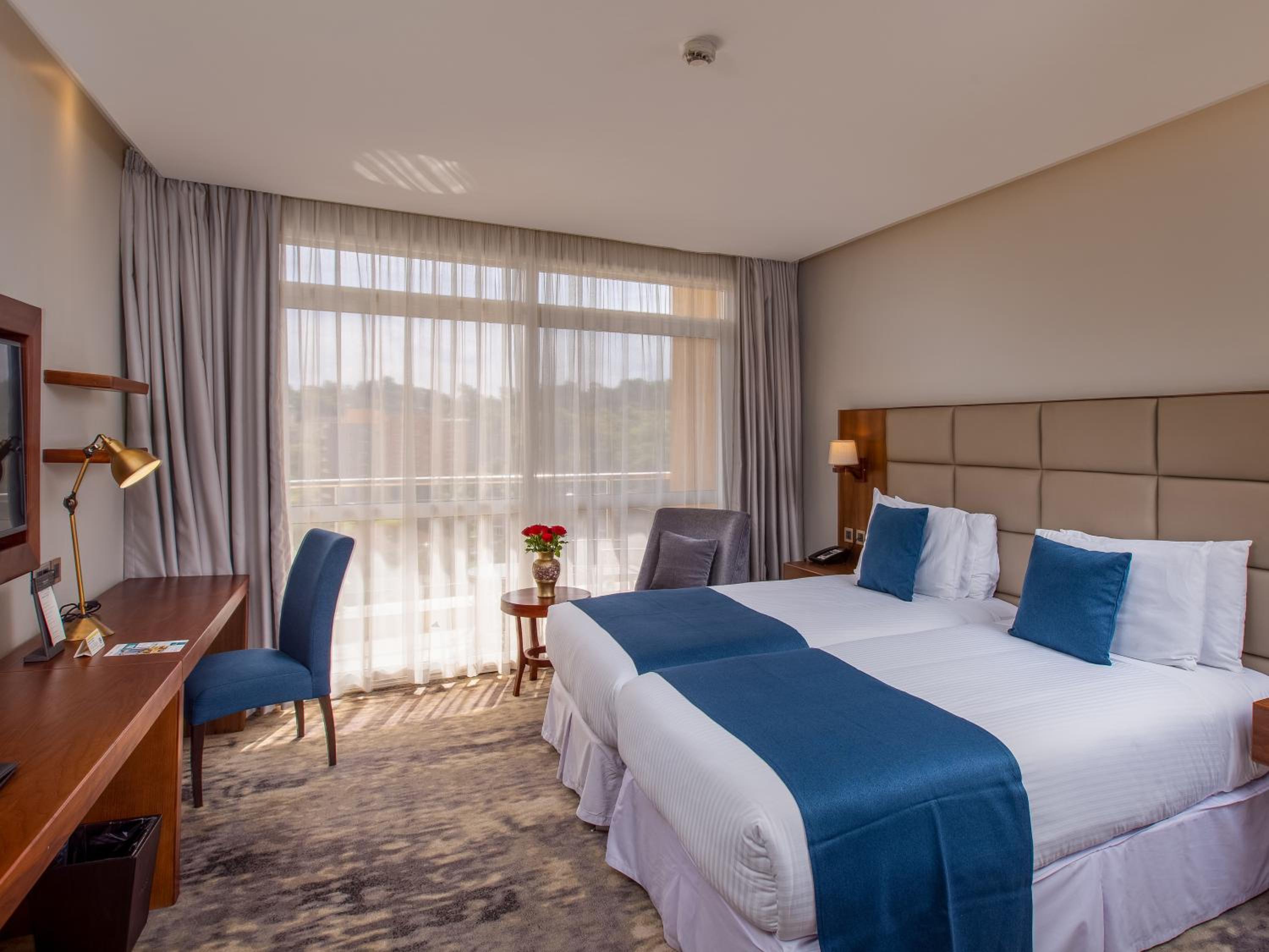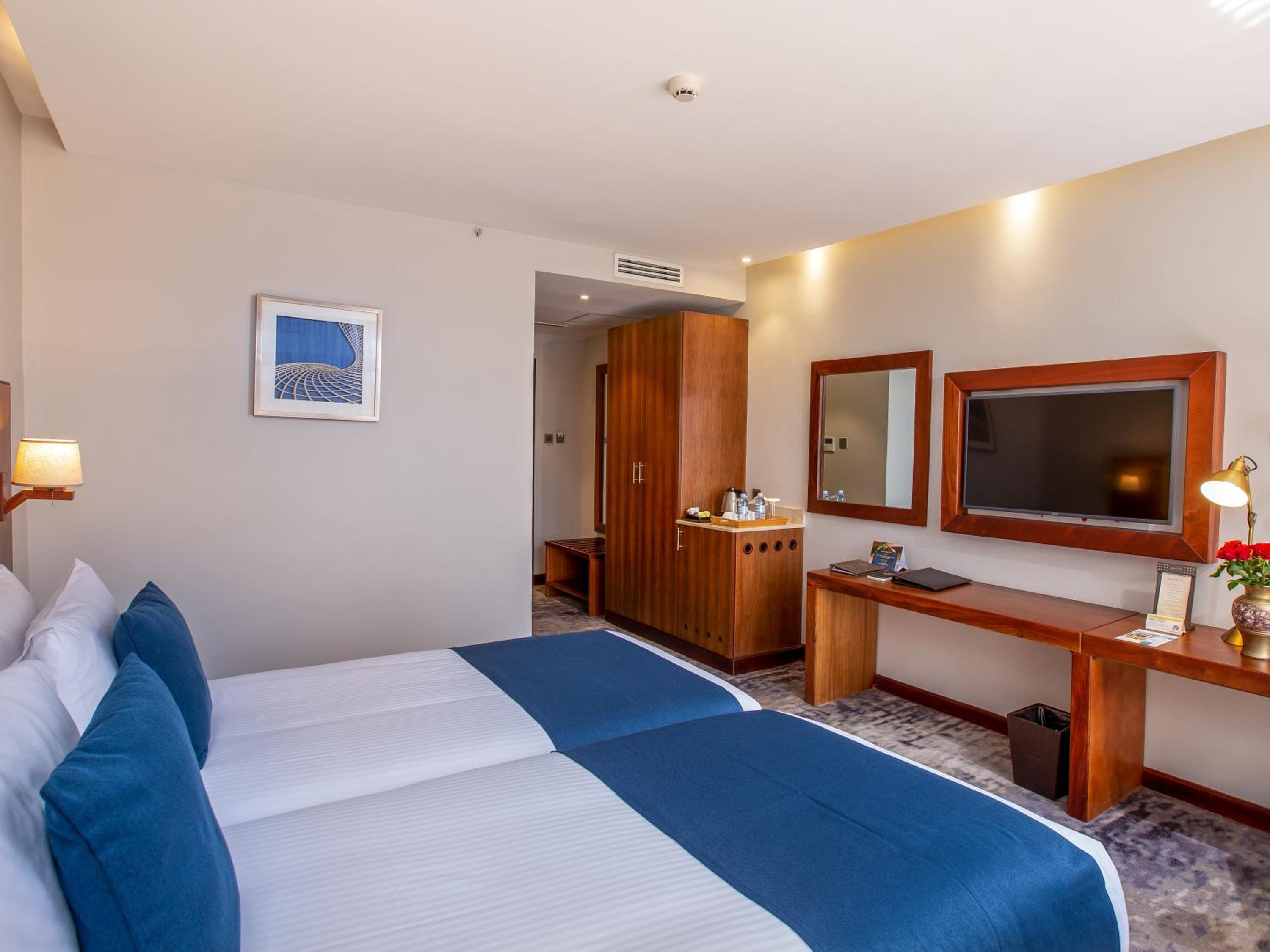 Golden Tulip Canaan Kampala offers elegantly designed rooms with modern amenities including air conditioning, flat-screen TVs, and private bathrooms. Enjoy ultimate comfort with complimentary slippers, toiletries, and a hairdryer provided in each room.
