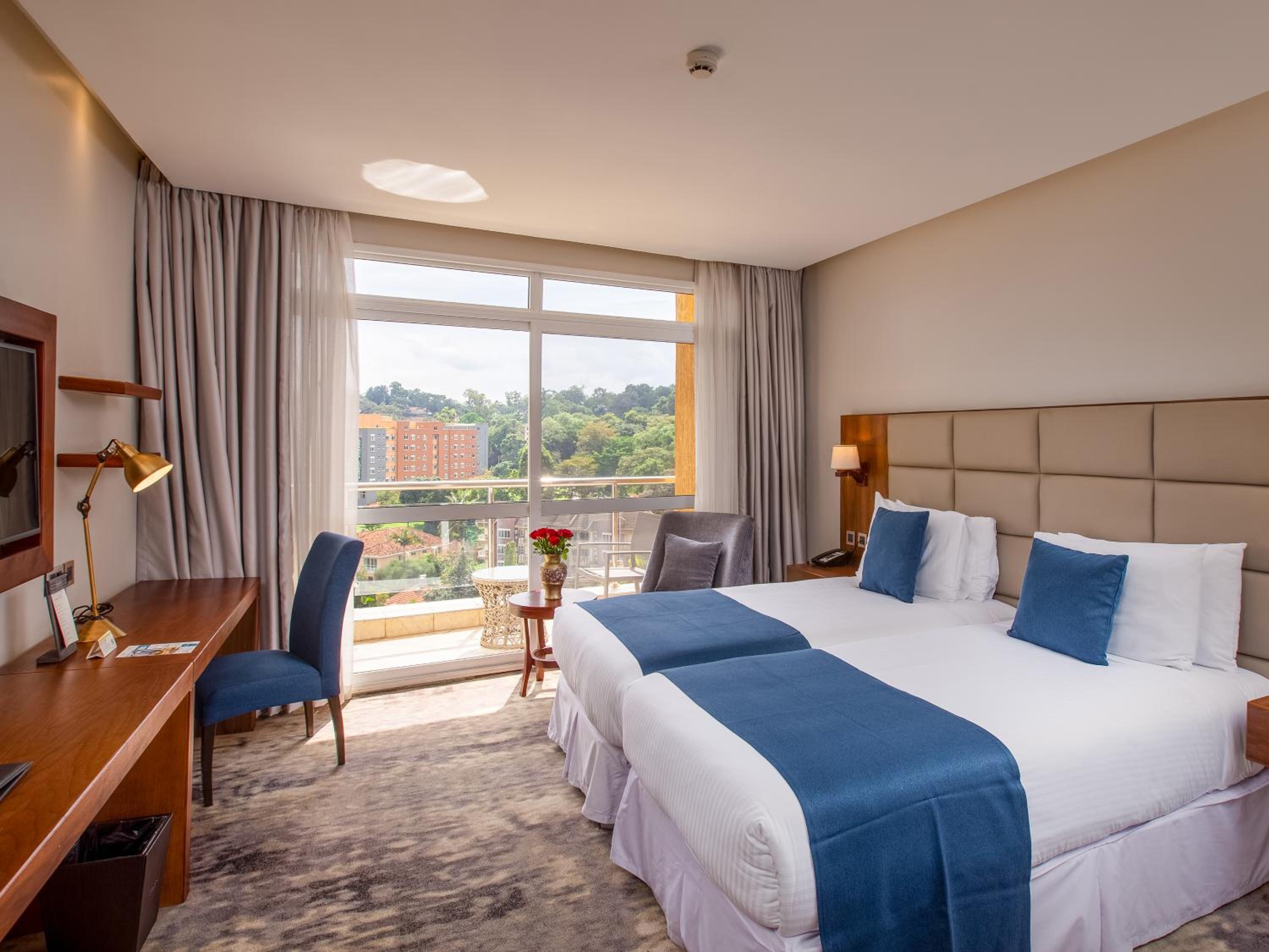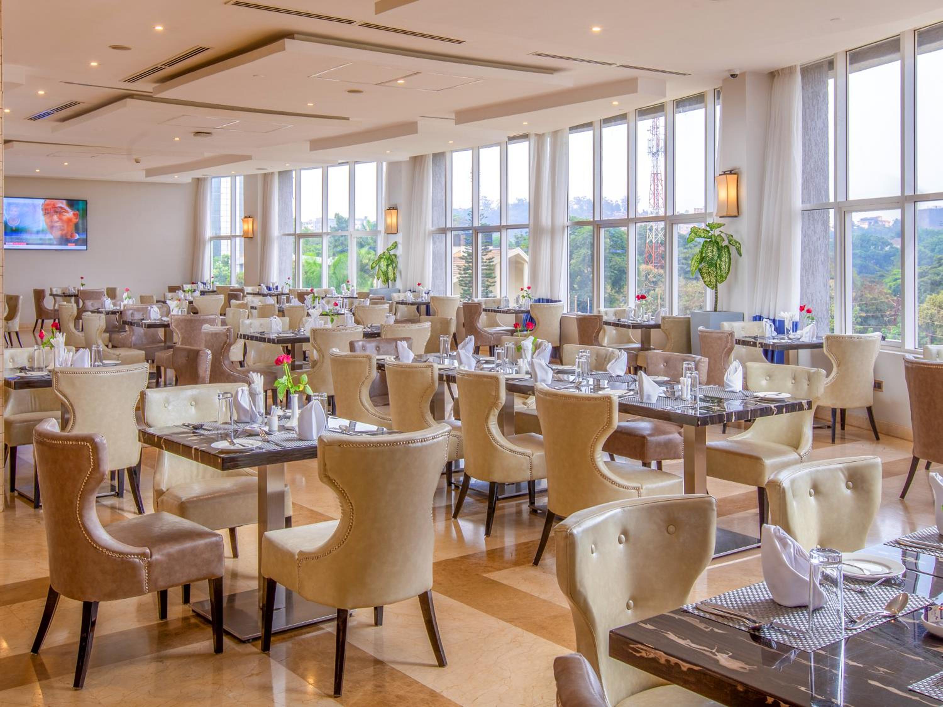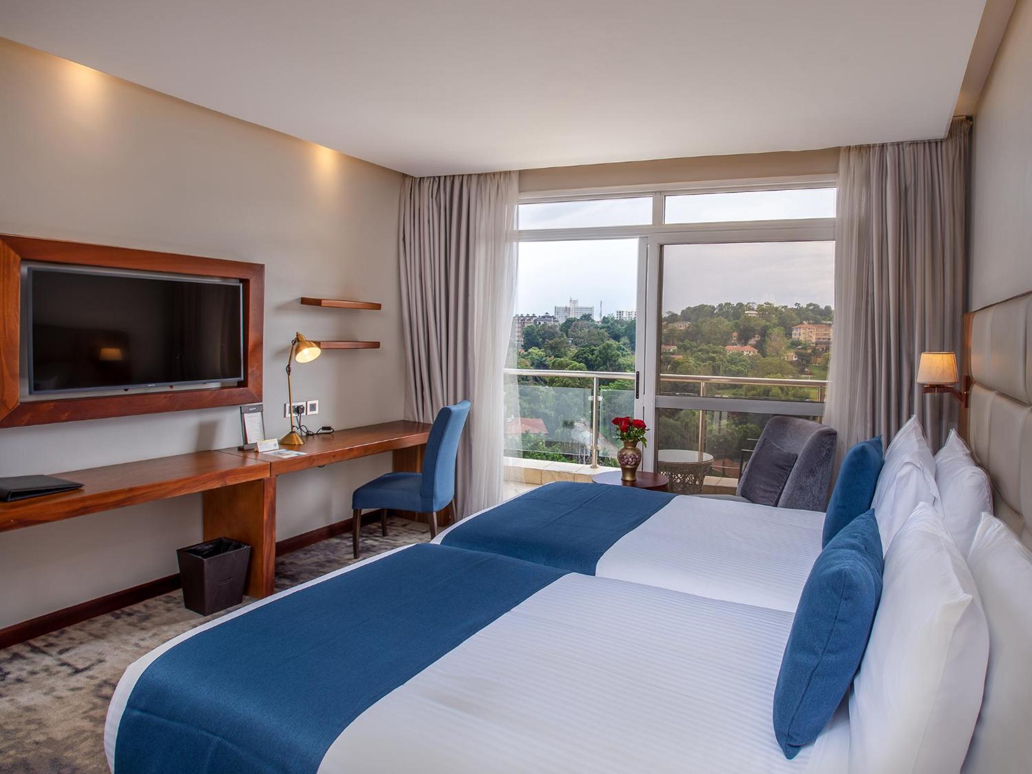 Indulge in relaxation at the hotel's spa center and sauna, perfect for unwinding after a day of exploring Kampala. Take a refreshing dip in the outdoor pool or simply lounge by the poolside while enjoying the serene views.