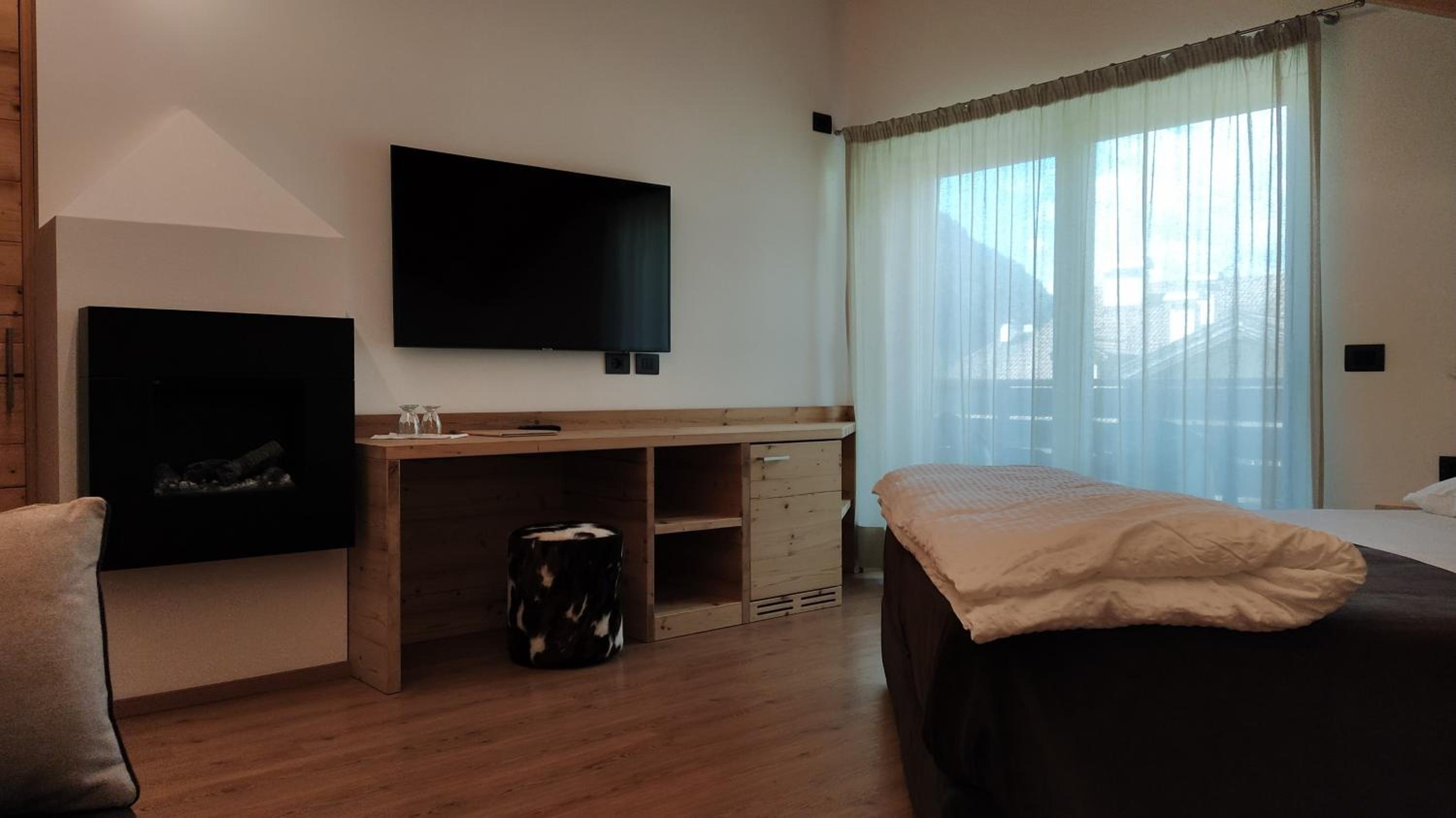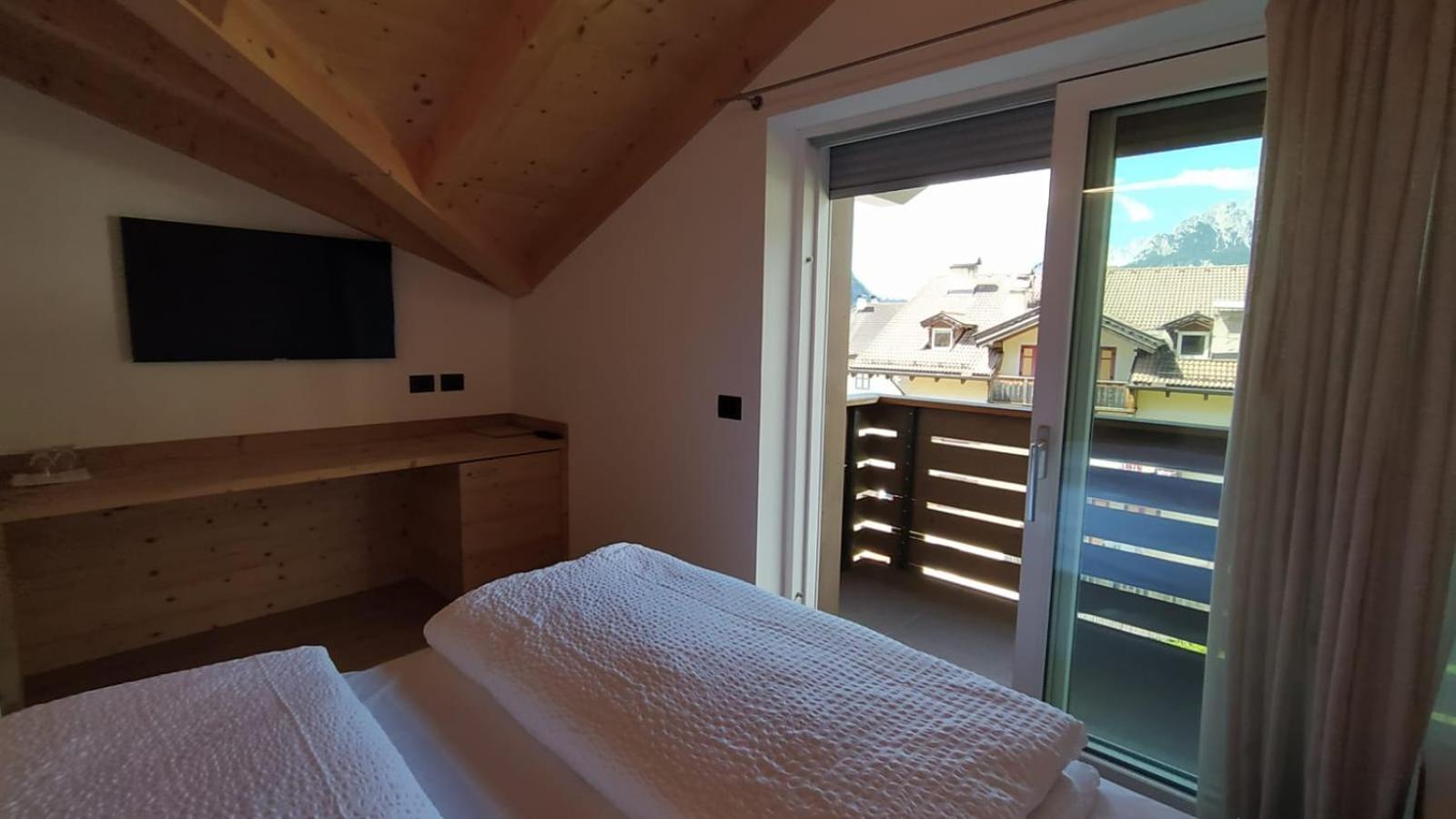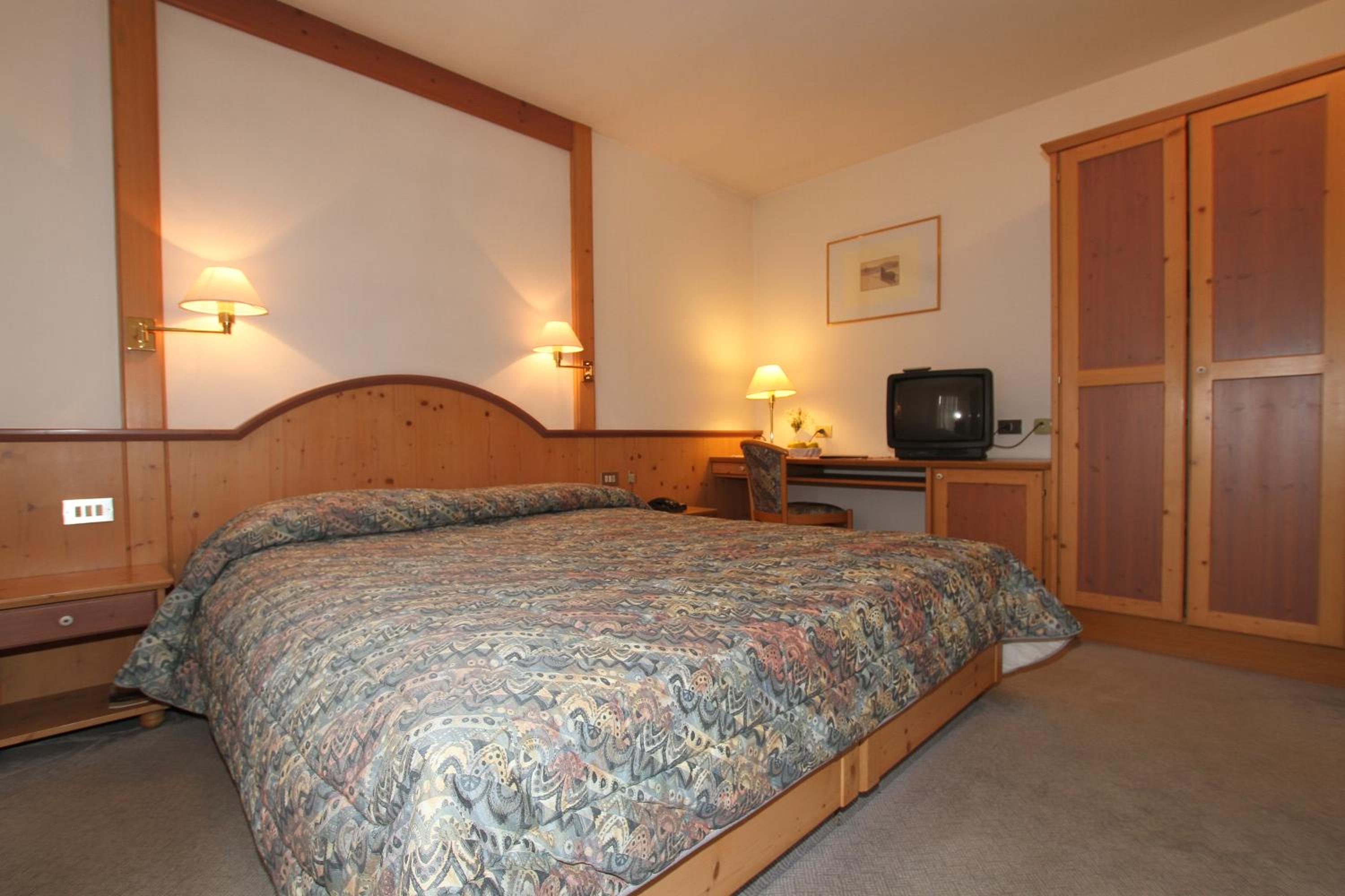 Hotel Villa Rosa offers cozy rooms decorated in a charming mountain style, complete with wooden furniture and carpeted floors. Each room features independent heating and a TV for your comfort. Some rooms even boast a balcony with stunning panoramic views of the surrounding mountains.