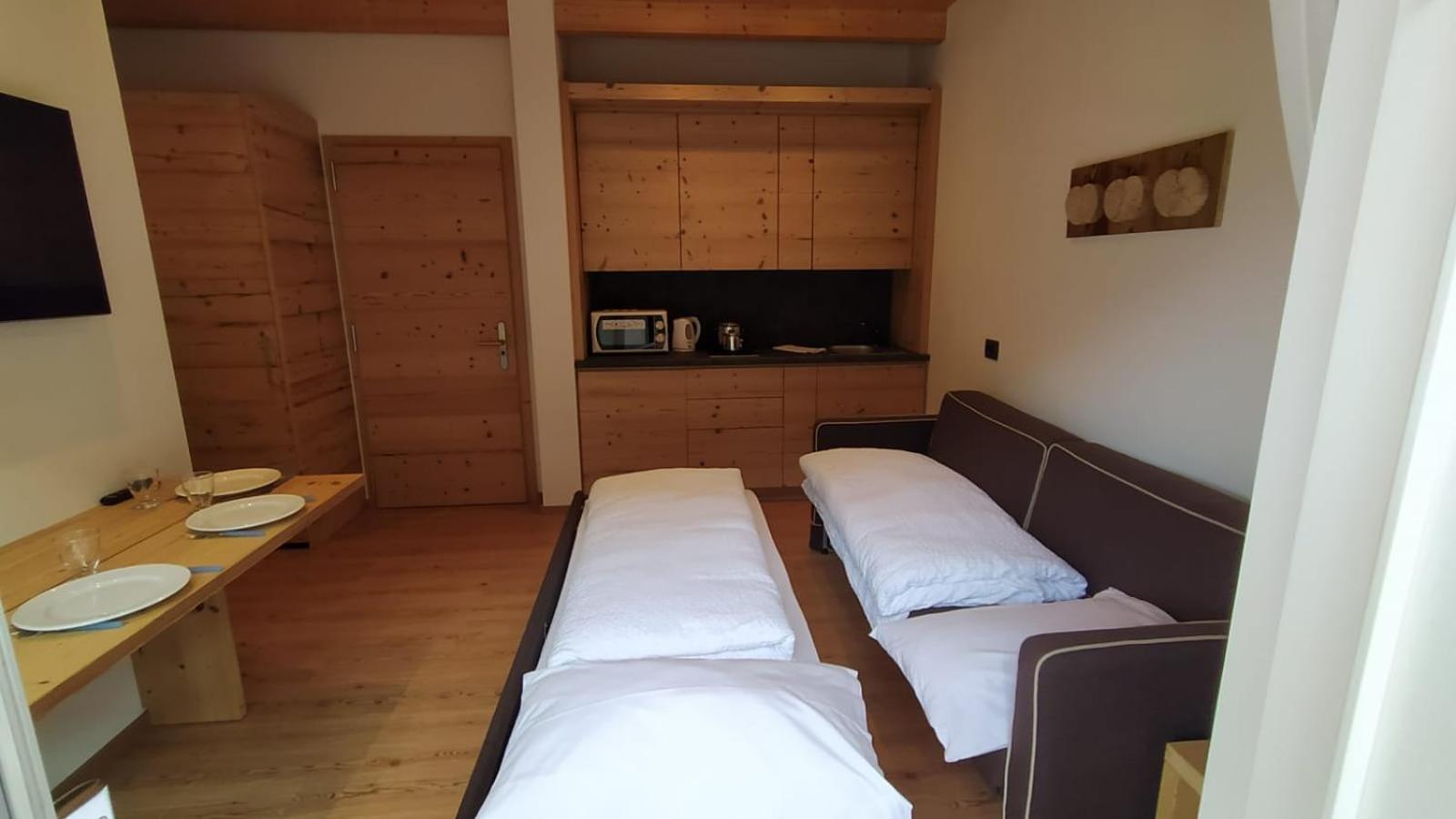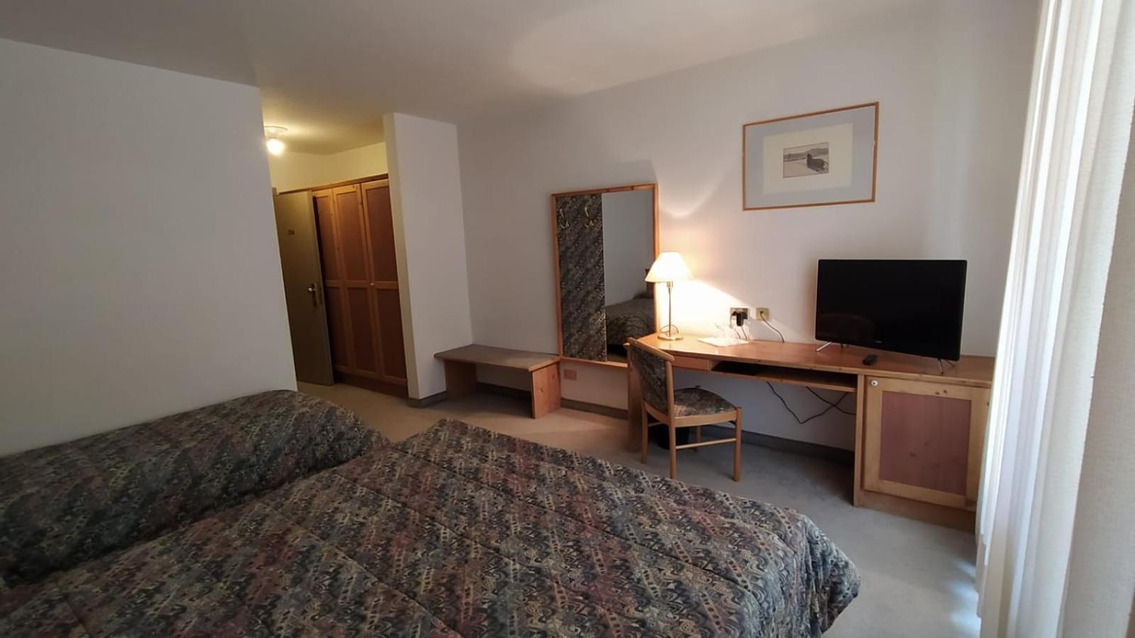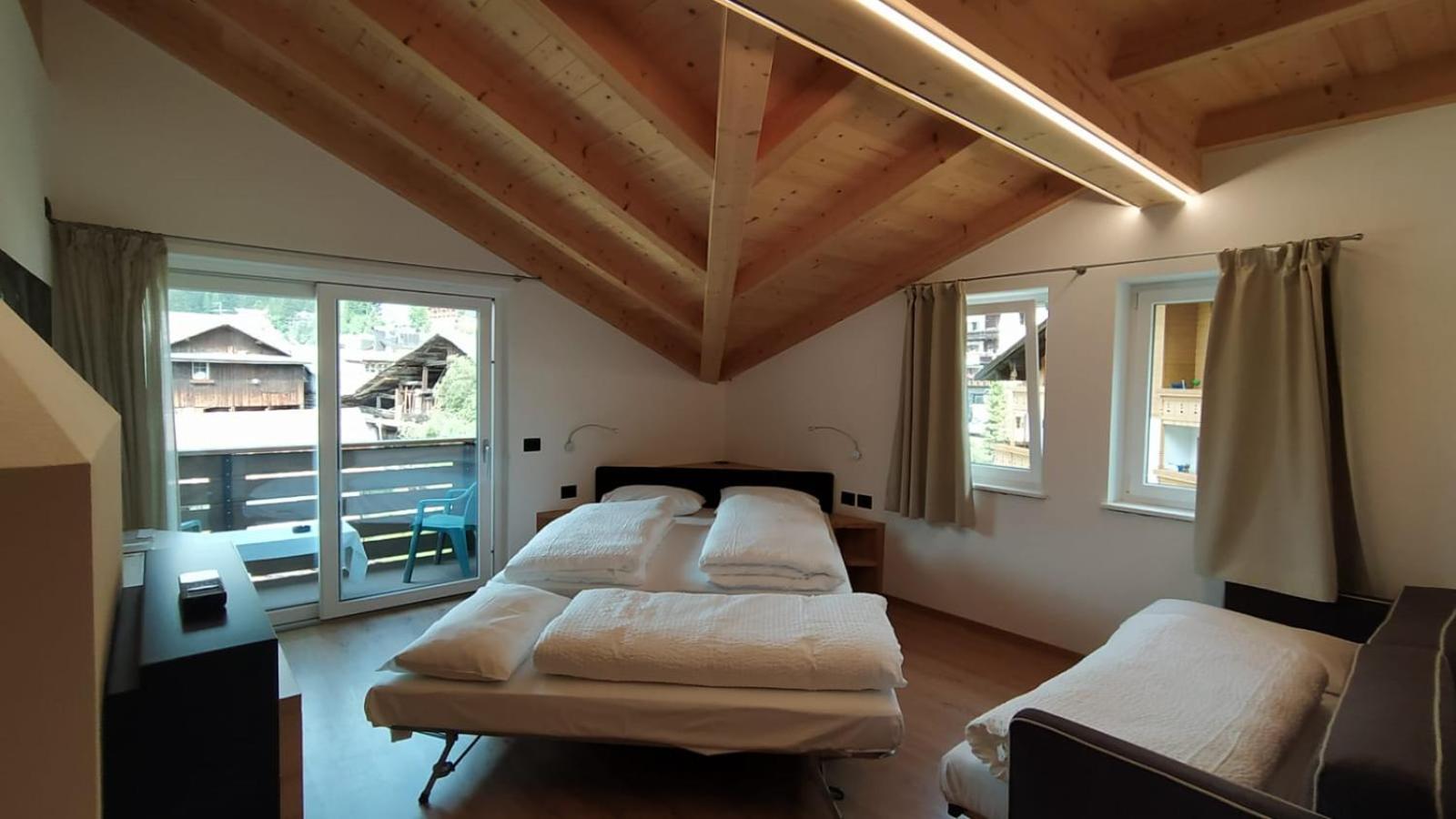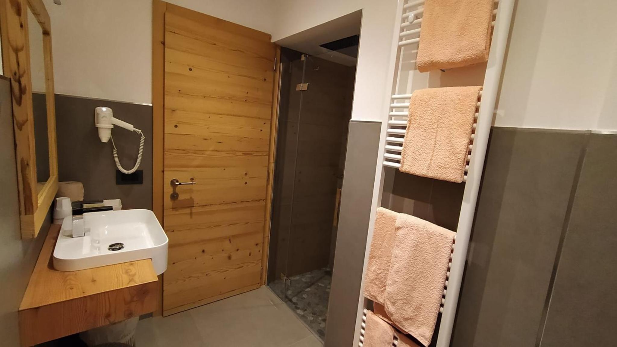 Hotel Villa Rosa offers cozy rooms decorated in a charming mountain style, complete with wooden furniture and carpeted floors. Each room features independent heating and a TV for your comfort. Some rooms even boast a balcony with stunning panoramic views of the surrounding mountains.