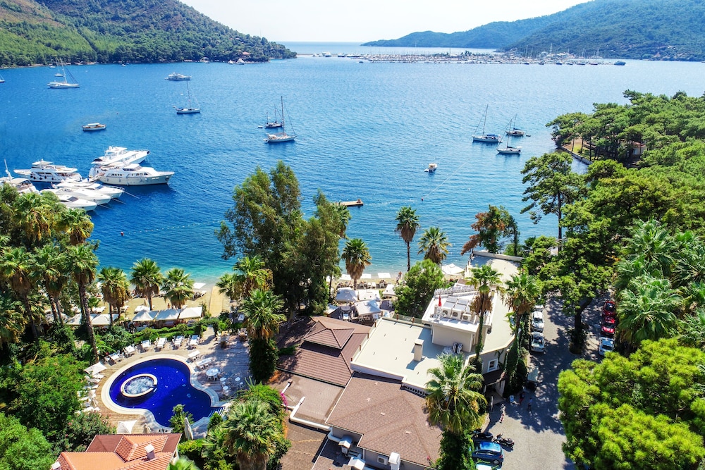 Ein idyllisch und ruhig gelegenes süßes Hotel in der Nähe vom lebhaften Marmaris. Speisen und Zimmerservice waren tadellos.