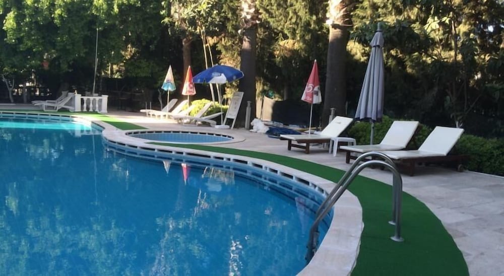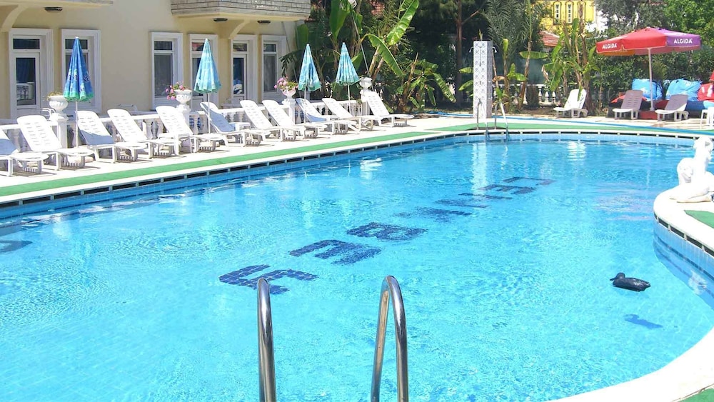 6 of us stayed here in june for 2 weeks..very lovely place..rooms beautifully decorated and spotless..showers nice and hot but on small side..we had poolside room facing pool...pool is lovely and well kept.sunbathing area is large and plenty of beds..grounds are kept nice too...we stayed half board. food was lovely..breakfast was mixed, turkish aswell as bread,,jams,,cereals etc and fresh eggs cooked to order..daytime snacks had a wide choice and very cheap ,, evening meals were lovely and a hot choice every night. all meals were all nice. on the top floor are suites..we had a look and they were very luxurious would highly recommend. free wifi.. andrea and the staff were so polite.welcoing..attentive..ive stayed many places in calis but the staff here are exceptional. and hayati the night security/barman was lovely,,we were hungry late one night and he phoned local place our food order and had it brought to us. i had a problem and he was there straightaway to help me..all the staff are always there for you for anything. enjoyed our stay here so much we are booking again..close to all amenities and beach approx 7 min walk ,,strongly recommend this place to all ages ..great place to stay !!