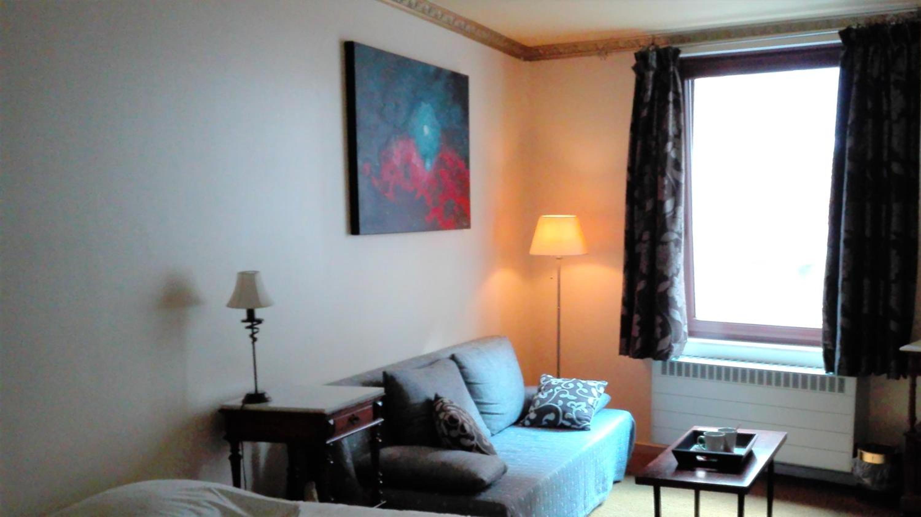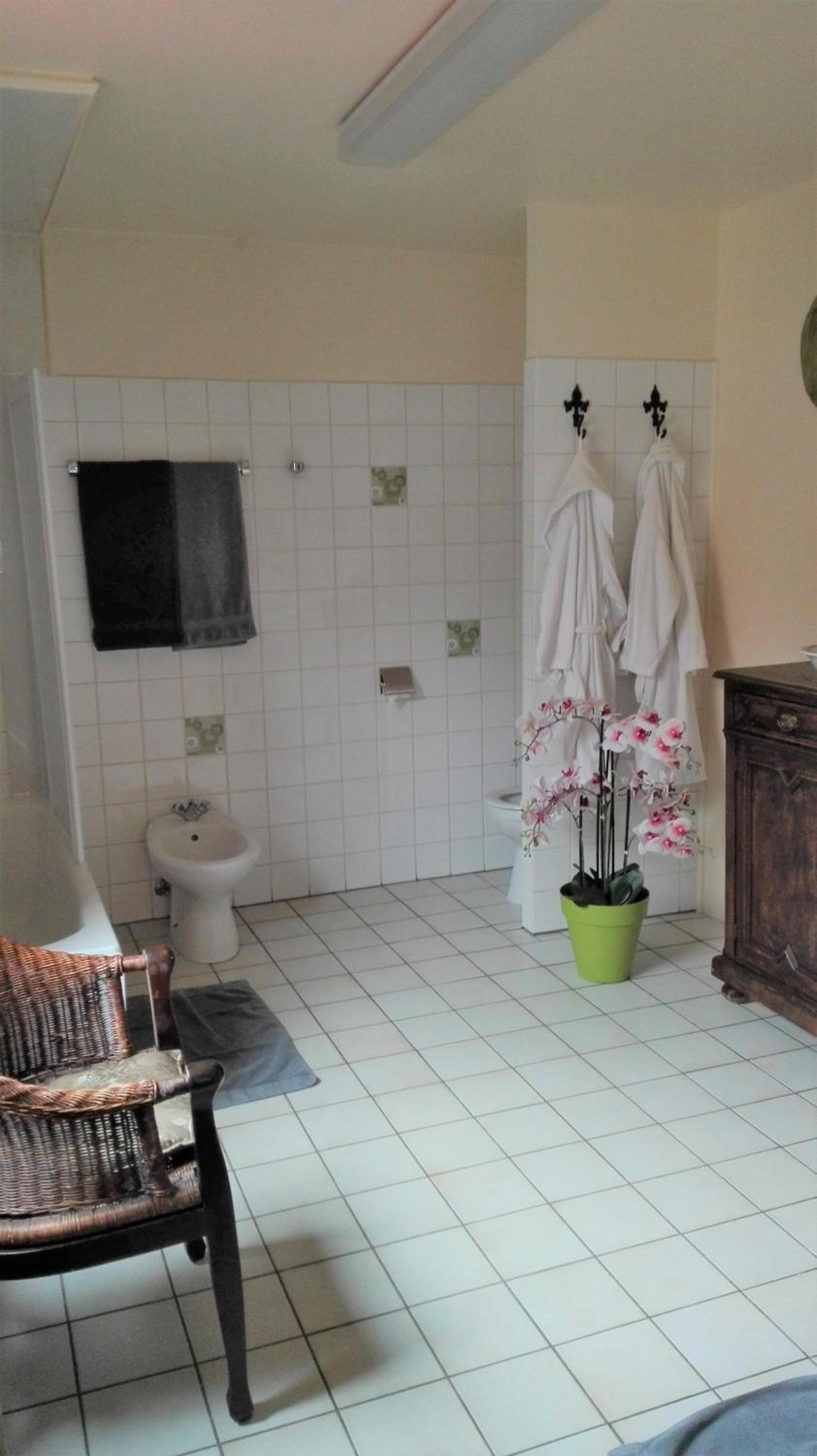 La chambre est très spacieuse, le lit confortable, et la salle de bain correcte (pas très moderne, mais tout à fait suffisante).