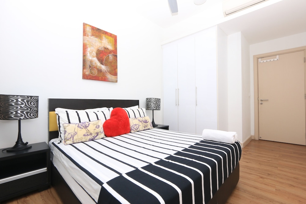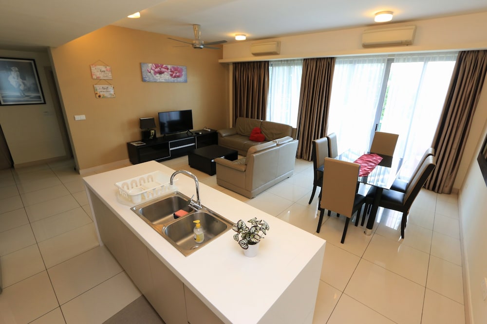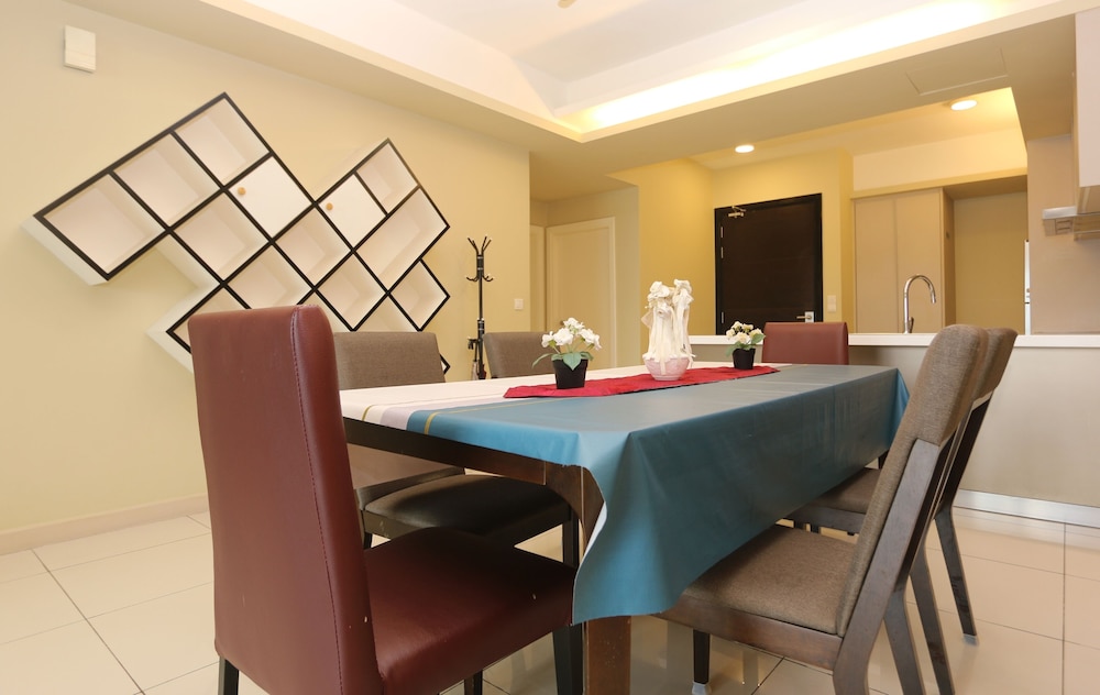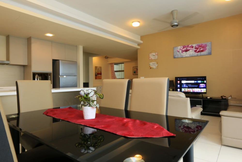 The apartment was really spacious - 3 big bedrooms with queen size beds. There were also extra mattresses if you needed. 3 bathrooms. A massive living space and great kitchen with lots of utensils if you wanted to cook. Fridge, microwave, washing machine. TV and Wi-Fi included. We had communicated with our hosts Dian and Ethan prior to arrival. Ethan arranged to meet us when we arrived, very friendly and helpful. The swimming pool was massive, the photo does not do it justice. And the gym is very well equipped too. You feel very safe as there are security 24/7. Very quiet. Good location.