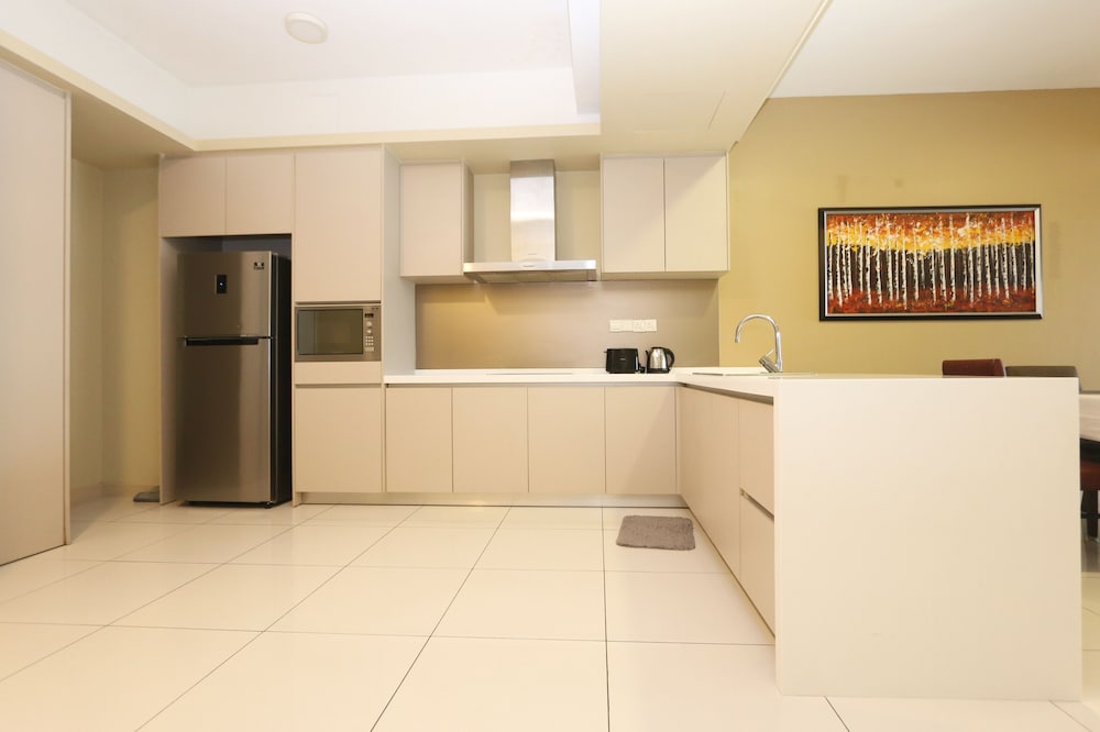 Apartment is spacious and comfortable, enough for our 8 people. Air-con is good. Rooms are big. The 3 bathrooms help in our morning rush 😁 Good location as it’s quite near to pavilion. There’s a cafe, Toast Box, below the apartment serving tasty food and good coffee.