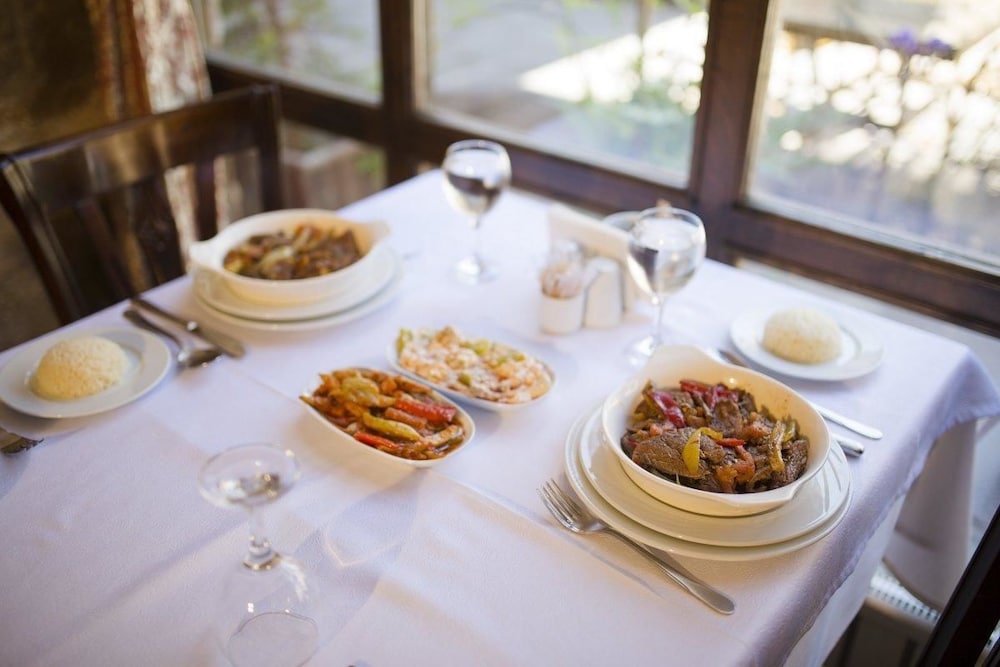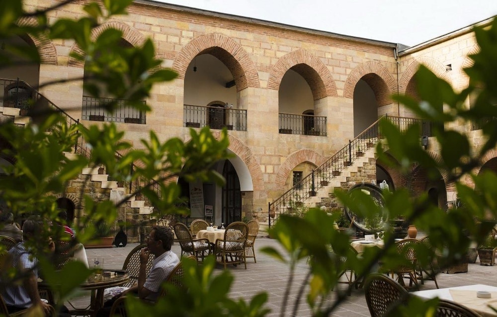 otelin yeri çok merkezi. han havası otantik bir his veriyor. tavanlar yüksek ve odalar ferahh. kahvaltı da çok iyi. akşam yemekleri için geniş avlu ve müzik çok hoş. alkol var. ama çarşaf temizliğine birazdaha önem verlmeli ve yastıklar çok rahatsızdı.