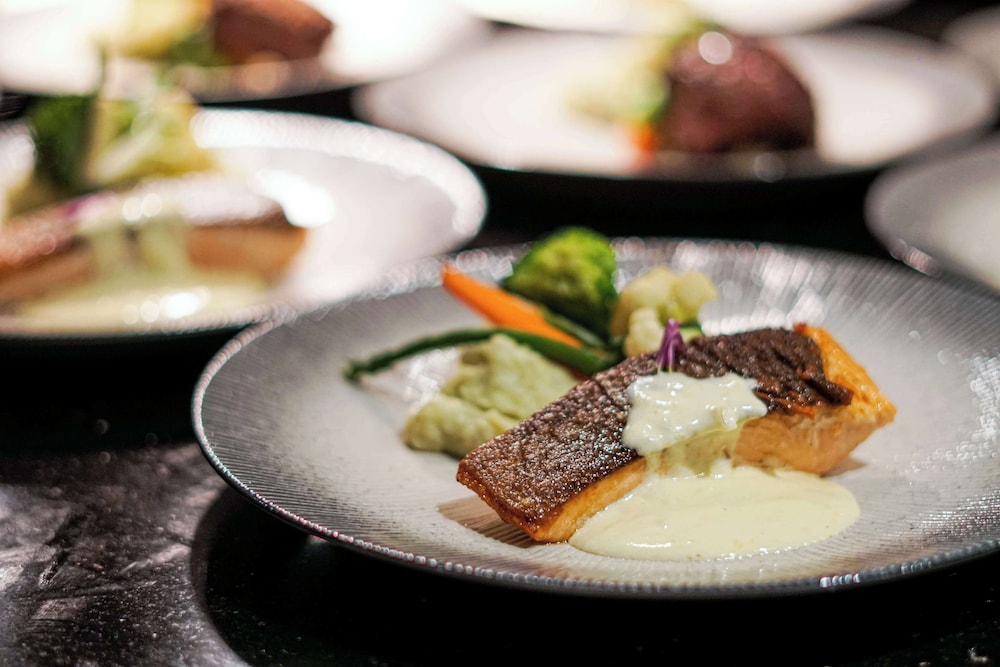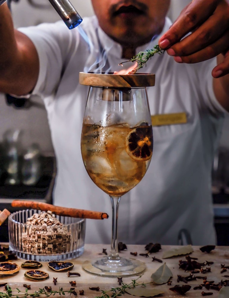 Savor exquisite Mediterranean cuisine at Basil & Thyme with stunning pool views or unwind at one of our two bars/lounges featuring refreshing beverages.